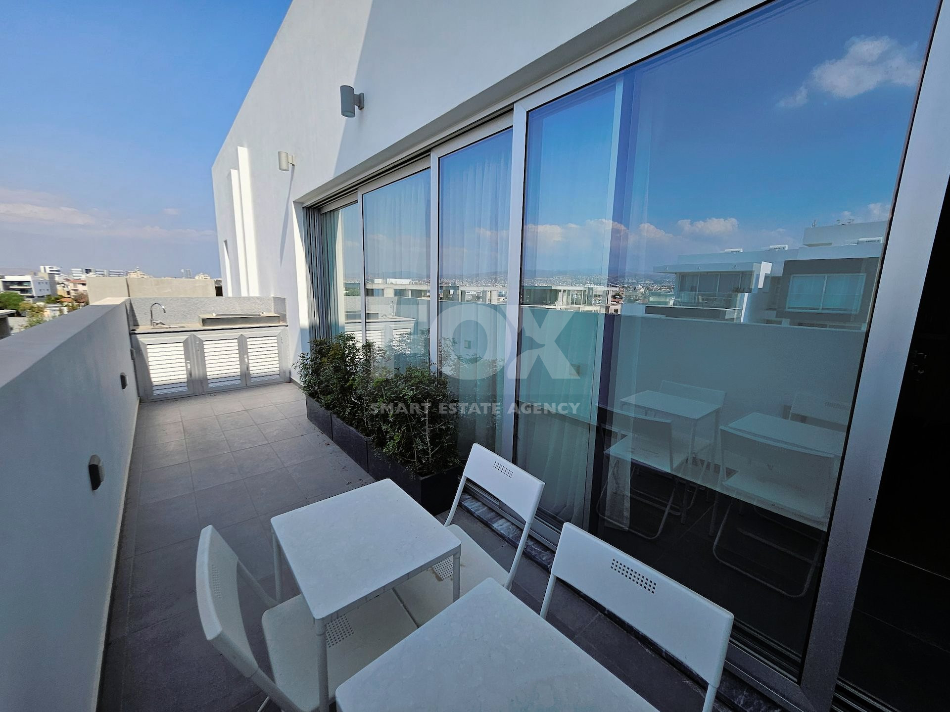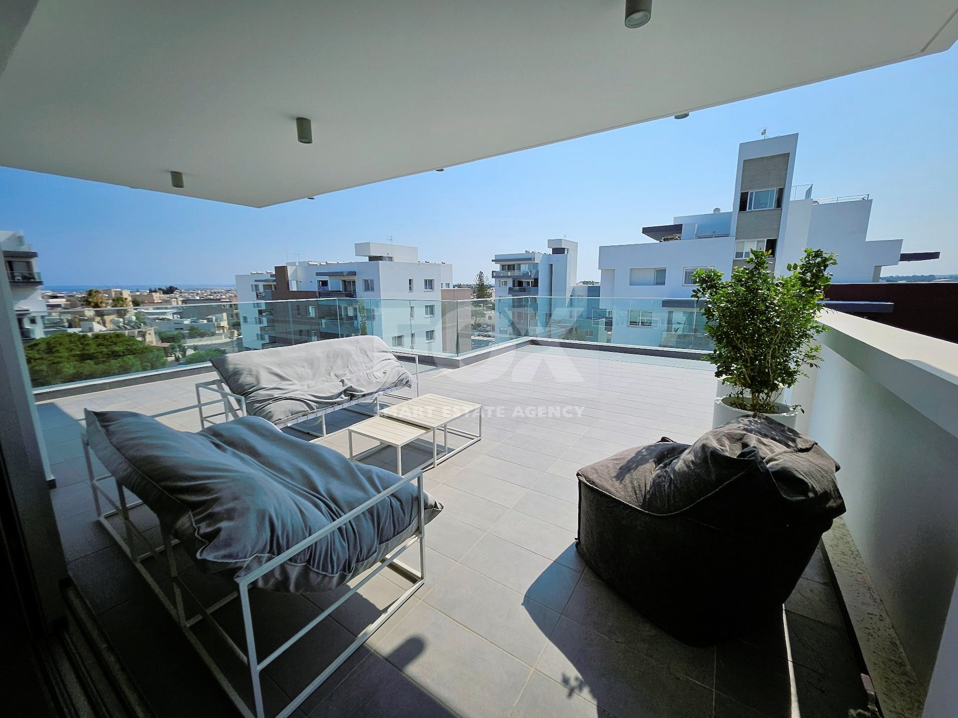 Spanning an impressive 154sqm of internal space, with an additional 50sqm of covered veranda and 59sqm of uncovered veranda, the penthouse occupies the entire top (4th) floor of the complex, offering breathtaking views of the city, mountains, and sea. The open-plan layout includes a kitchen, living room, dining area, guest WC with shower, main bathroom, and four spacious bedrooms, each with its own private covered veranda. The master bedroom features an en-suite bathroom with a shower and walk-in wardrobes.