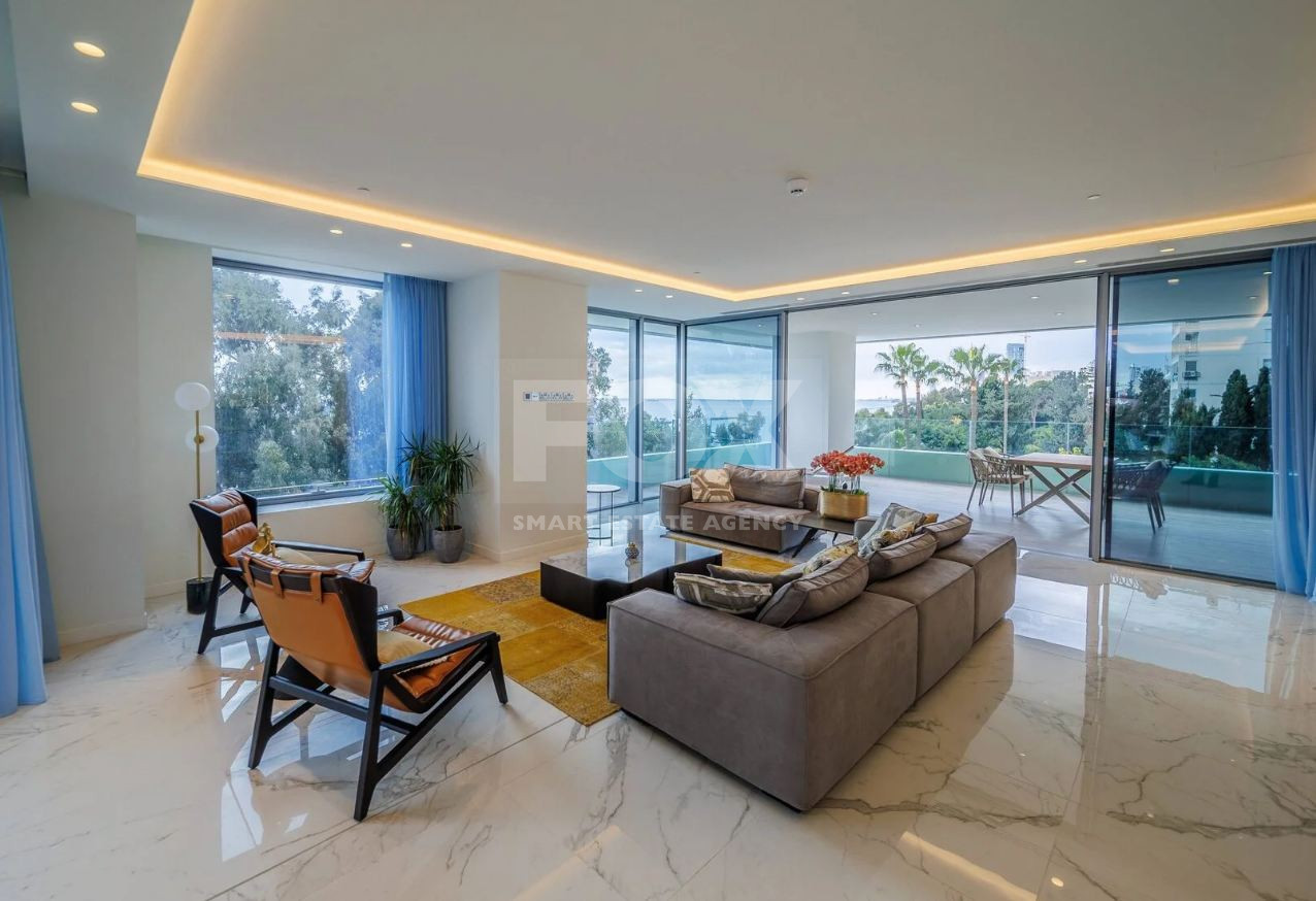 Currently available are two exceptional full-floor apartments, located on the 1st and 10th floors, both offering identical layouts and outstanding privacy. Each unit features four spacious bedrooms and occupies an entire floor, providing the feeling of a private residence within a secure luxury building. The apartments offer approximately 254 sq.m. of internal living space, complemented by an impressive 96 sq.m. of covered verandas, ideal for entertaining or enjoying unobstructed sea views in absolute comfort.