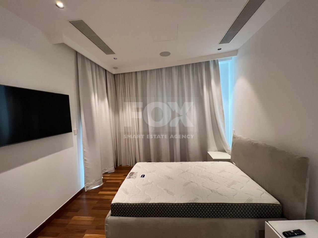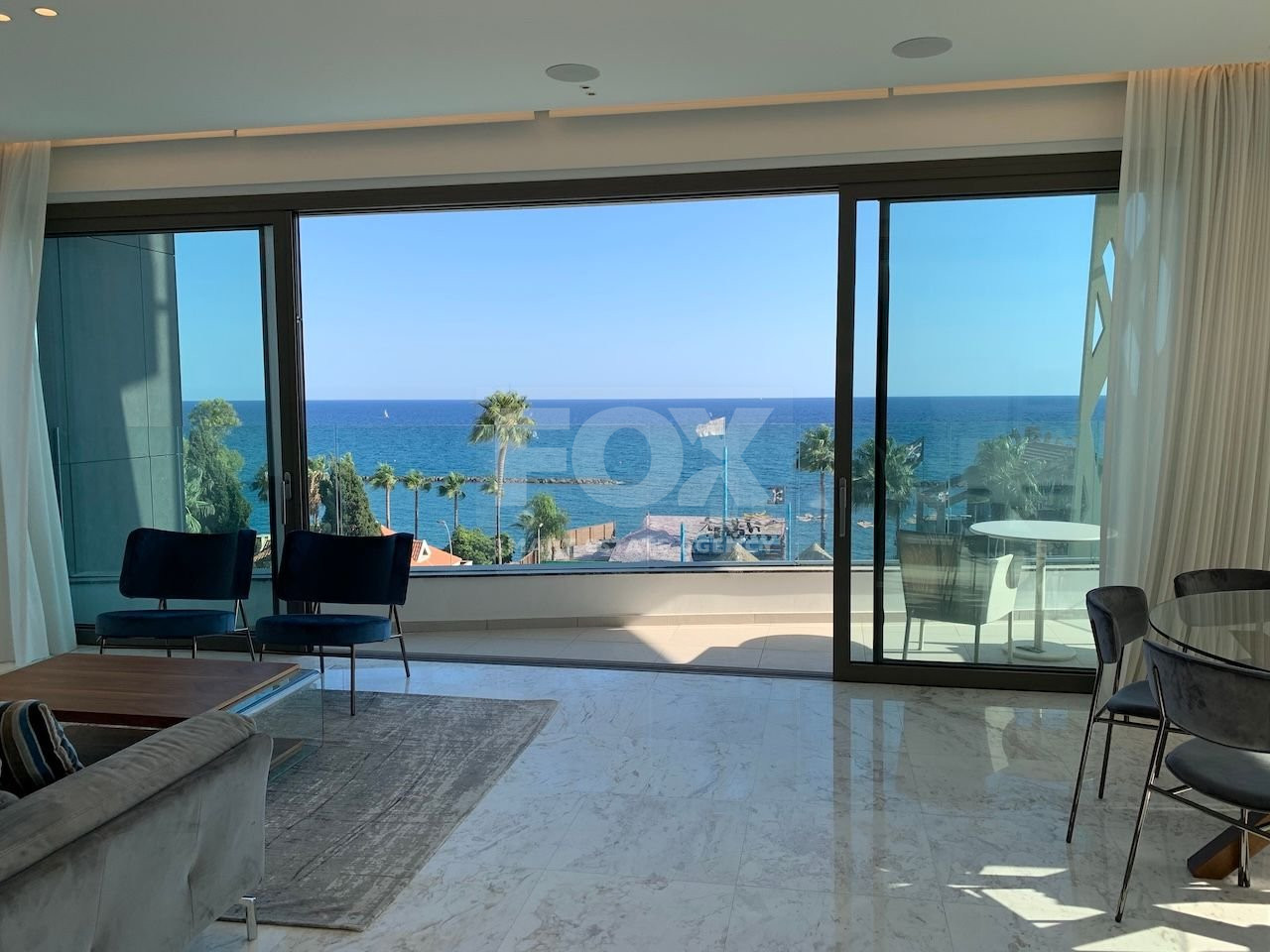 Three (3) Bedroom Beachfront Apartment situated on the 5th floor of a High-rise building in Limassol, with an iconic architecture. The Apartment is fully equipped and furnished with high quality electrical appliances, high-tech home automation system and known furniture brands . The Automation system controls the Lighting, A/C units, Electric Curtains & Music from a Main panel and Smart phone. The apartment has luxurious marble floors covering the living, dining, kitchen, corridor areas and bathrooms.