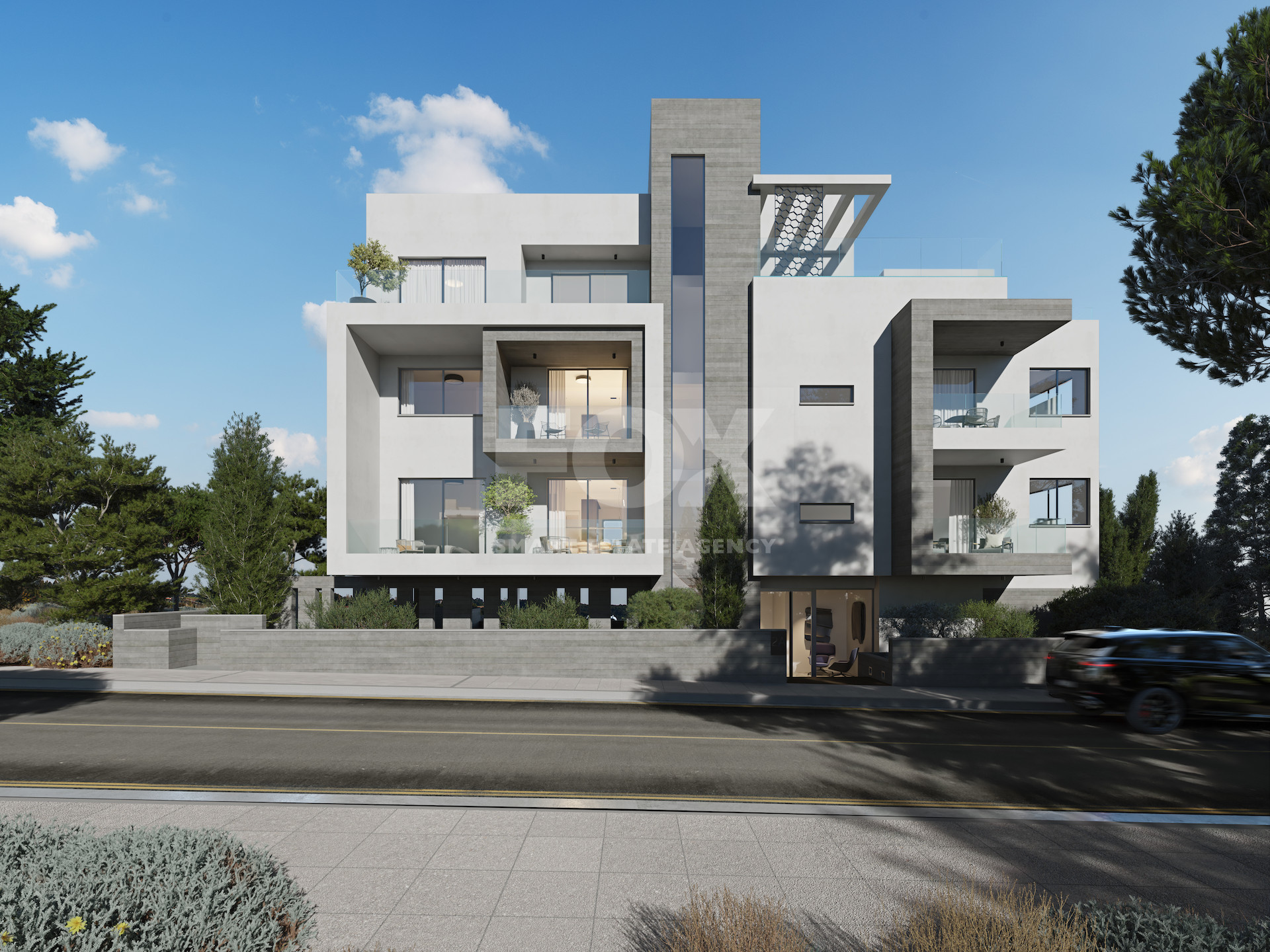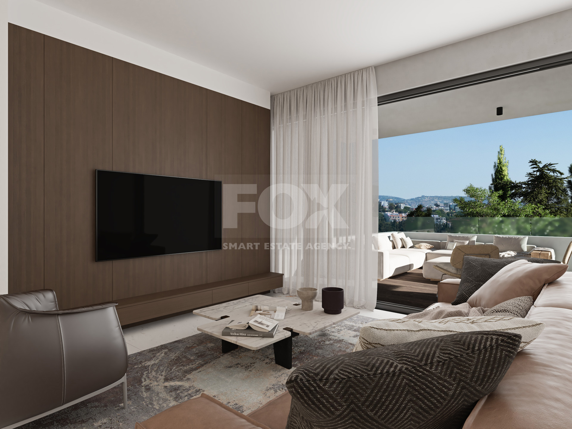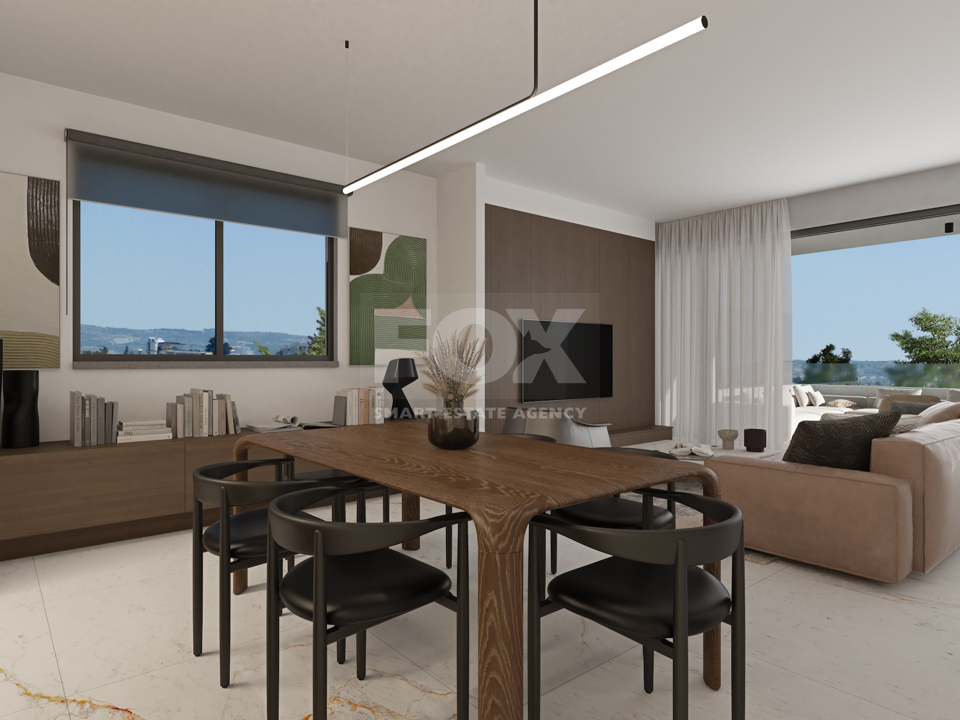 The property is part of a modern residential development built with clean architectural lines and high energy-efficiency standards (Energy Class A). The layout maximizes natural light and connects the indoor living space with a spacious covered veranda, creating a functional extension of the home. The veranda includes a built-in BBQ area, ideal for private outdoor living.