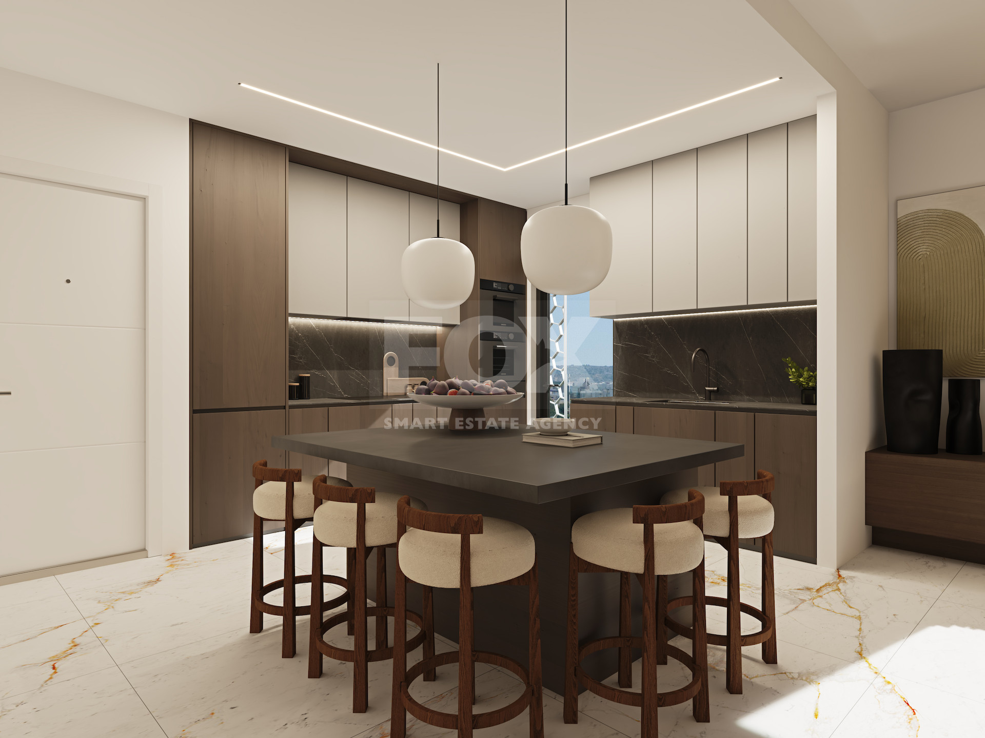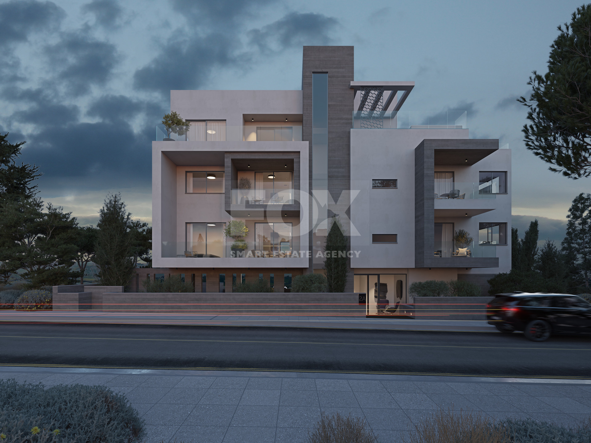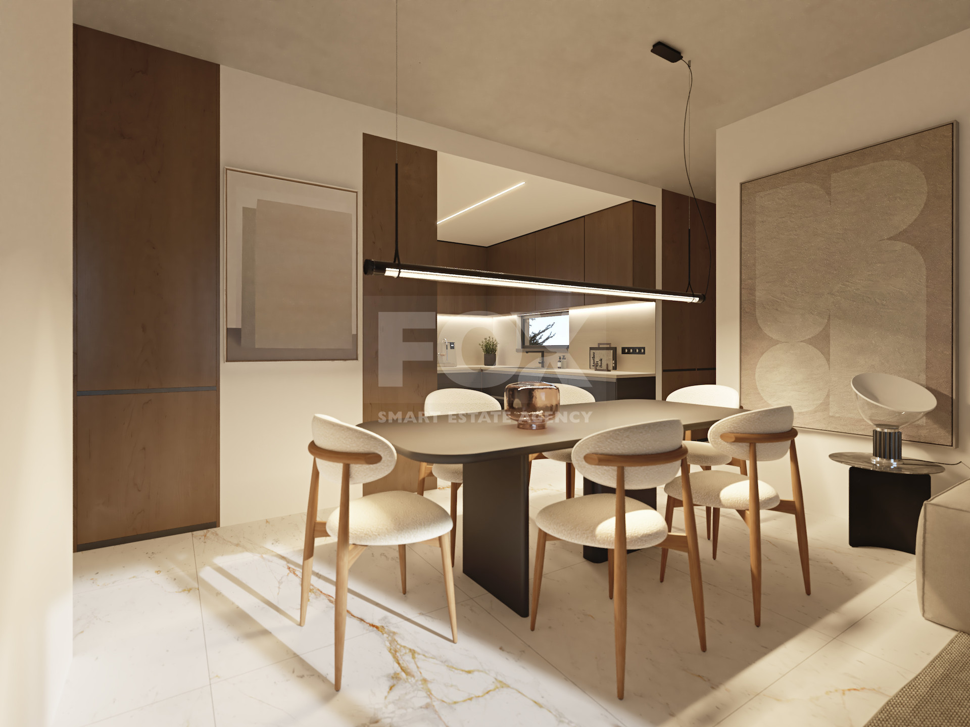 The property is part of a modern residential development built with clean architectural lines and high energy-efficiency standards (Energy Class A). The layout maximizes natural light and connects the indoor living space with a spacious covered veranda, creating a functional extension of the home. The veranda includes a built-in BBQ area, ideal for private outdoor living.