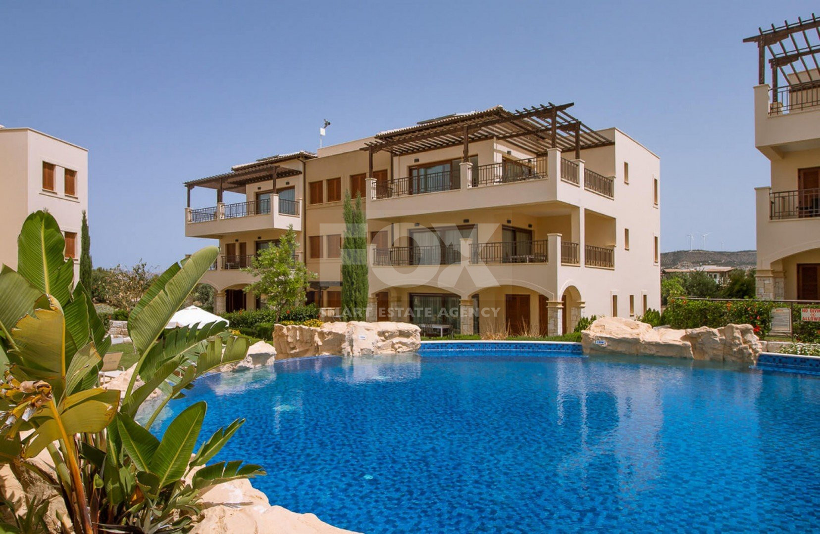 The property is located on the first floor, offering lovely views of the communal pool.