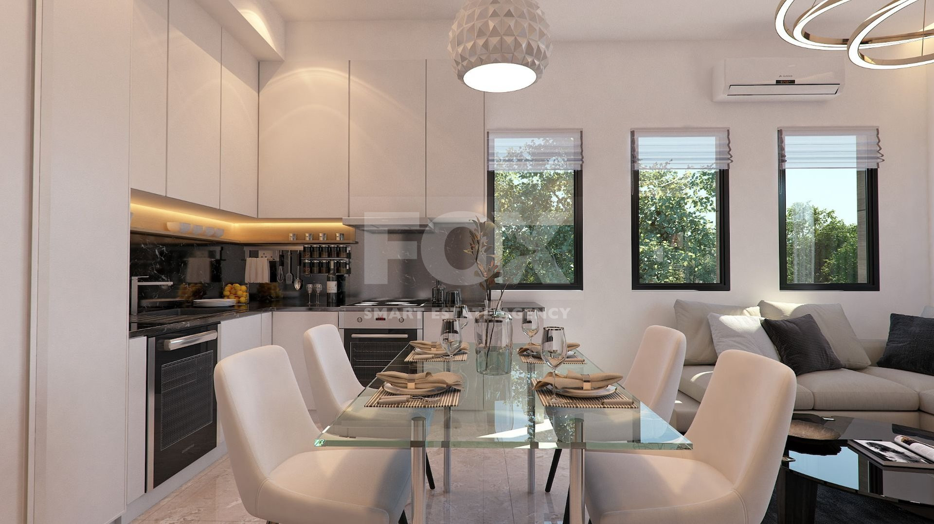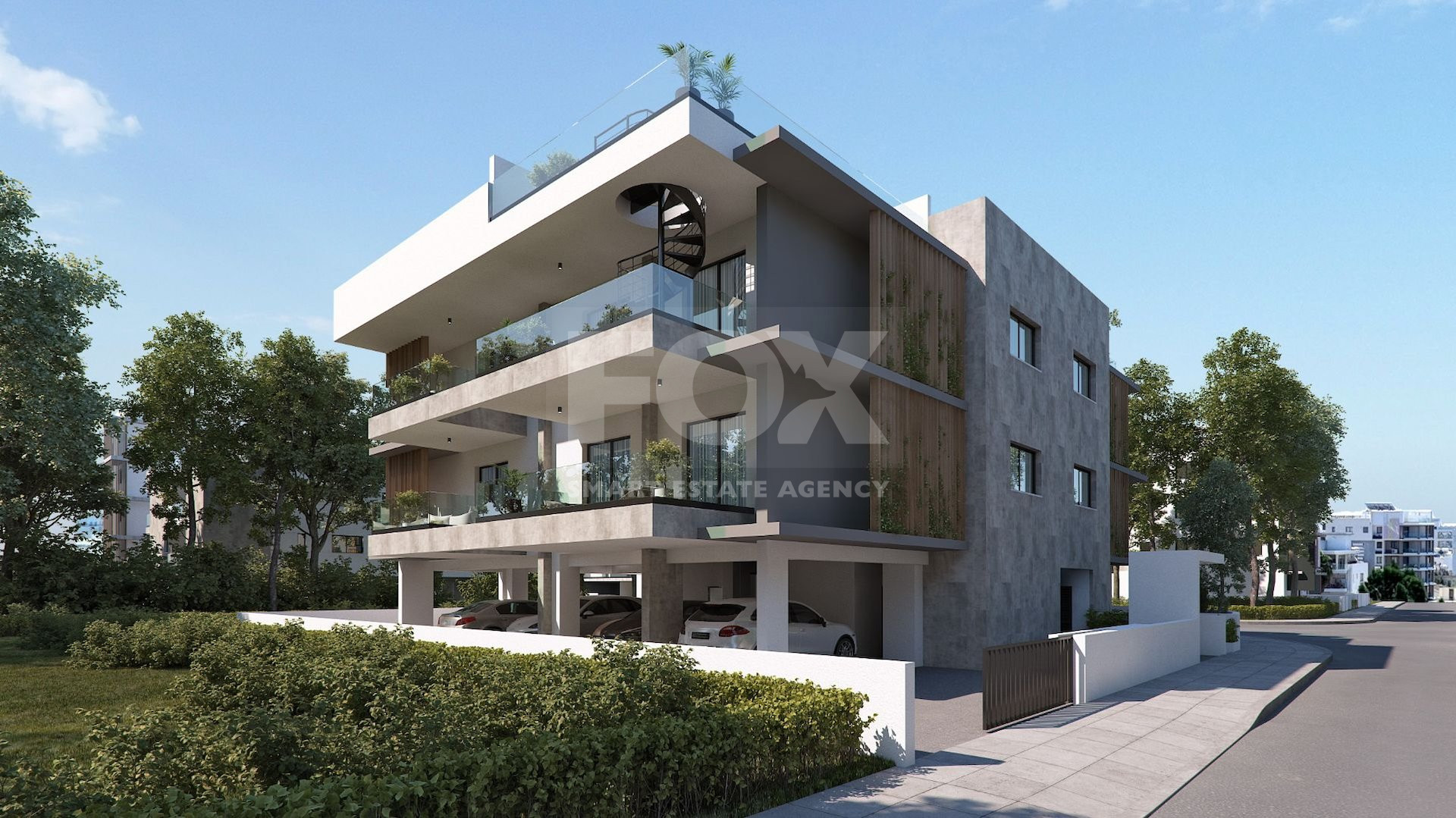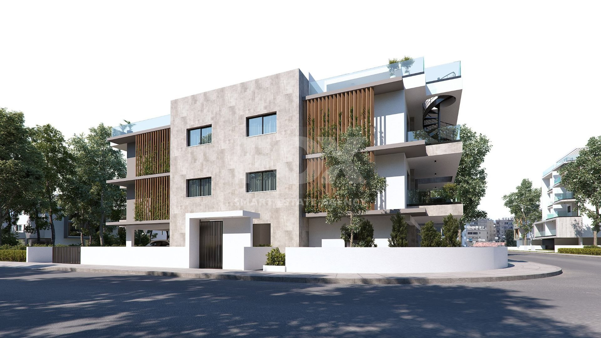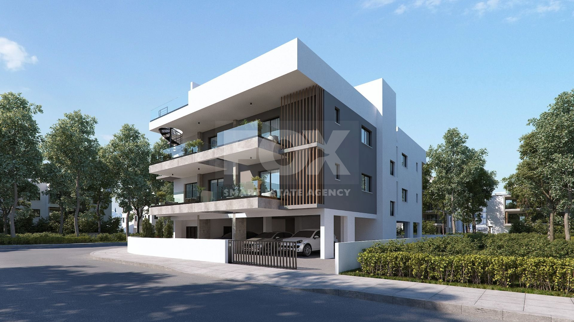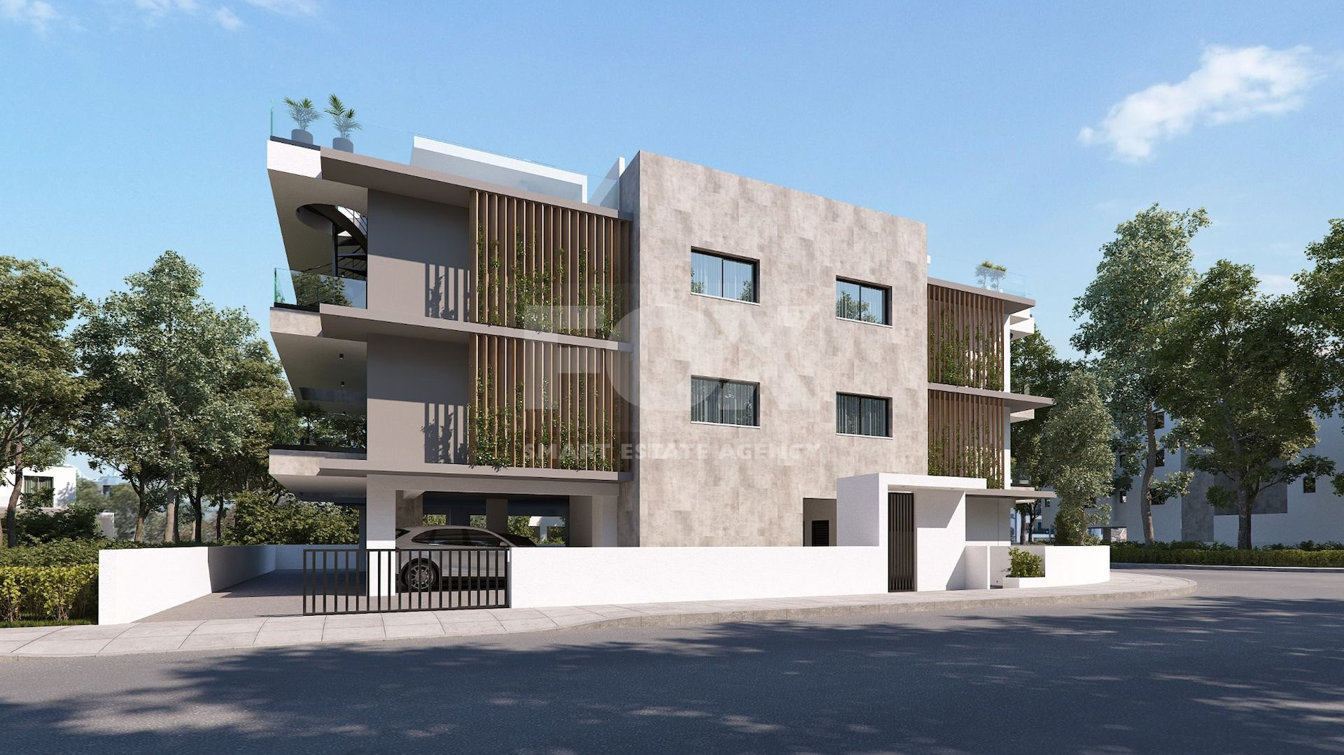 This wonderful complex consists of a low-rise building with parking and an entrance group on the ground floor, as well as two residential floors with 3 one-bedroom apartments, 2 two-bedroom apartments, 1 two-bedroom apartment with a roof terrace and 1 three-bedroom apartment with a roof terrace — 7 beautiful apartments in total.