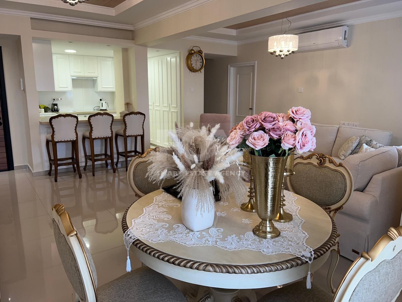 Sold fully furnished with custom interior design. Furniture imported from Italy and Indonesia. Includes Bosch appliances, Samsung 75-inch TV, garden furniture, security system with cameras, and reinforced security door.