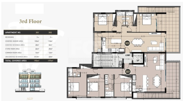 The complex consists of only 6 apartments, with high specifications, underfloor heating, Italian Kitchens, etc.