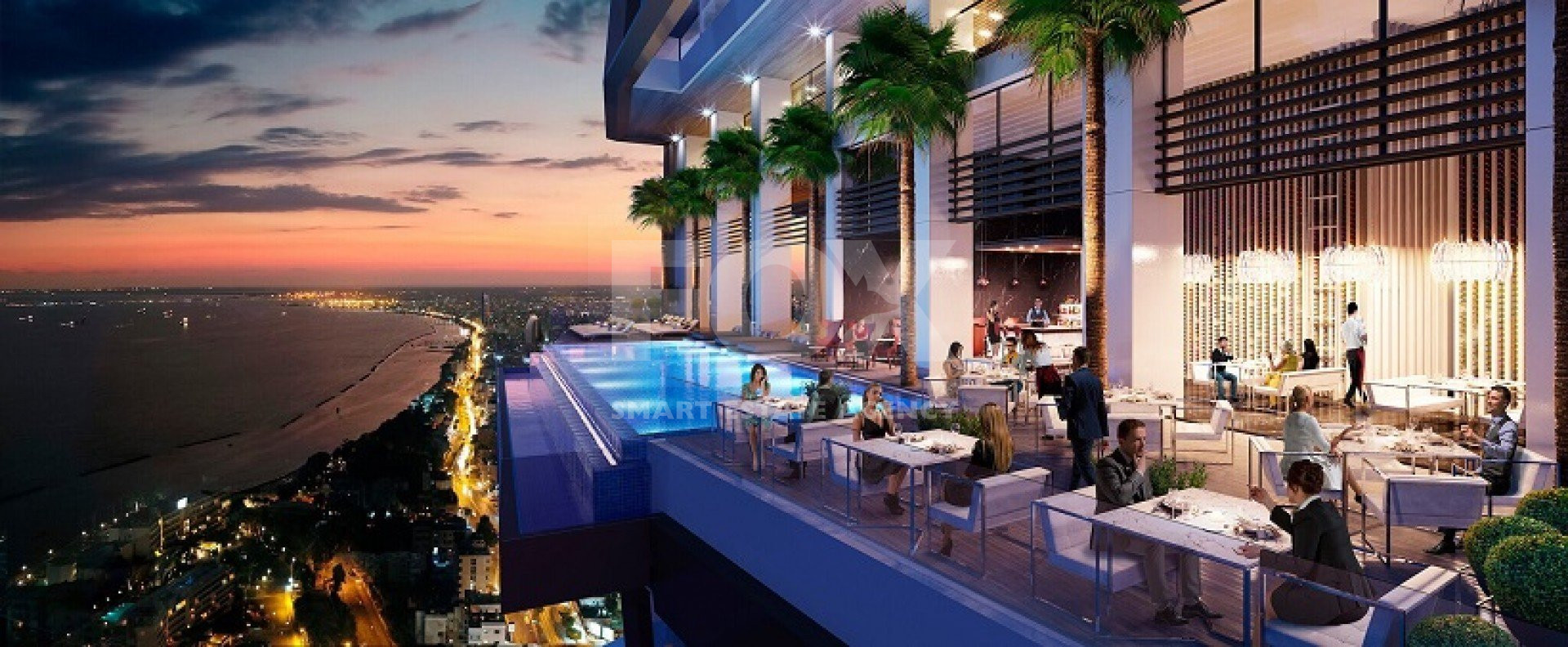 The complex is an extension of the skyline of Limassol, with its unique stretch of land and high end residences on the Mediterranean coastline. Inspired by the unique shape of a luminescent diamond, It was designed to house exclusive residences and a spectacular infinity-edge pool and restaurant on the 10th floor with uninterrupted views of the Mediterranean Sea.It benefits from unique, life enhancing amenities spanning over two entire floors and overlooking the blue waters of the Mediterranean Sea. Life will transcend expectations with lush interiors and living areas, sports, leisure and lifestyle amenities.Accessible through private elevator landings, the residences are designed and finished to harmonise with the tower’s architecture and aesthetic. Impeccable quality is apparent throughout each residence in details like over sized core entry doors with designed door hardware and marble floors of the highest quality.Ceilings that are thoughtfully designed with hidden light features complement the character of these lavishly designed residences.