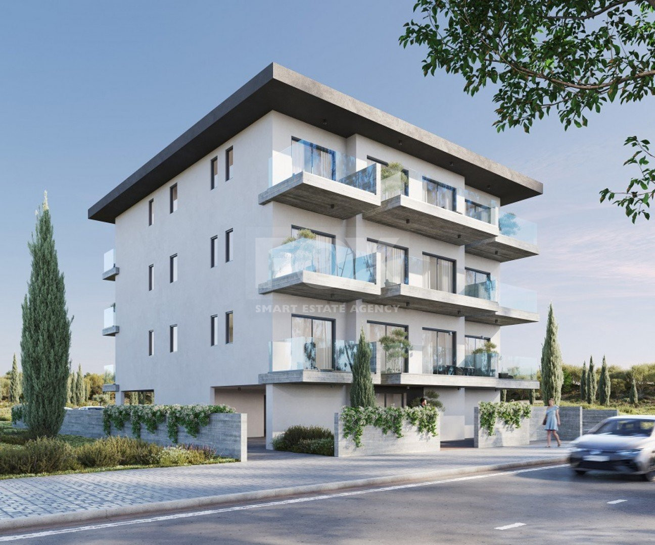 This beautiful development consists of just 9 apartments, over three identical floors. There are two 1-bedroom and one 2- bedroom apartment on every floor, each with its allocated parking space on the ground floor. The project is located in one the most popular areas among locals for living, in between the sought-after area of Universal in Pafos, and Geroskipou village.