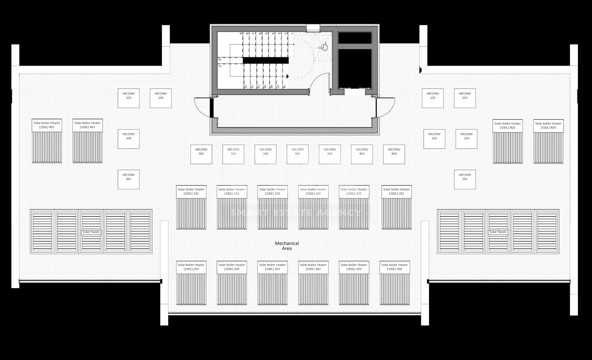 The apartment is equipped with provisions for VRV air conditioning and underfloor heating, ensuring optimal comfort throughout the year.