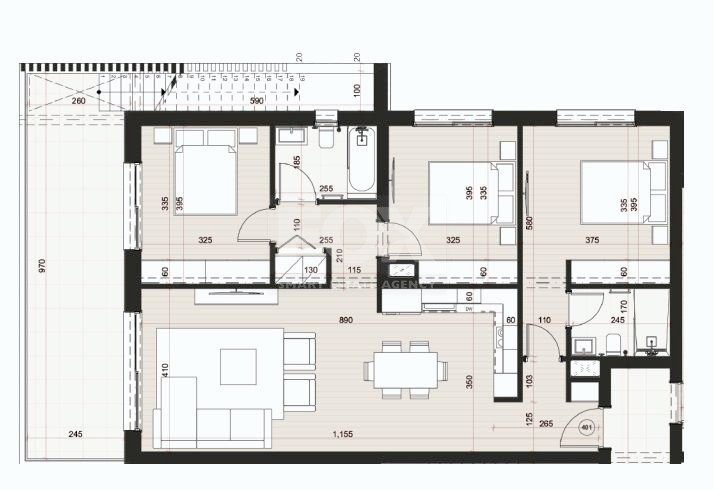 • Uncovered veranda area: 3 m²