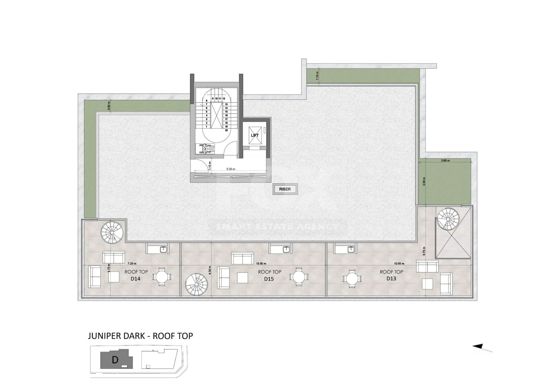 • Roof garden area: 78 m²