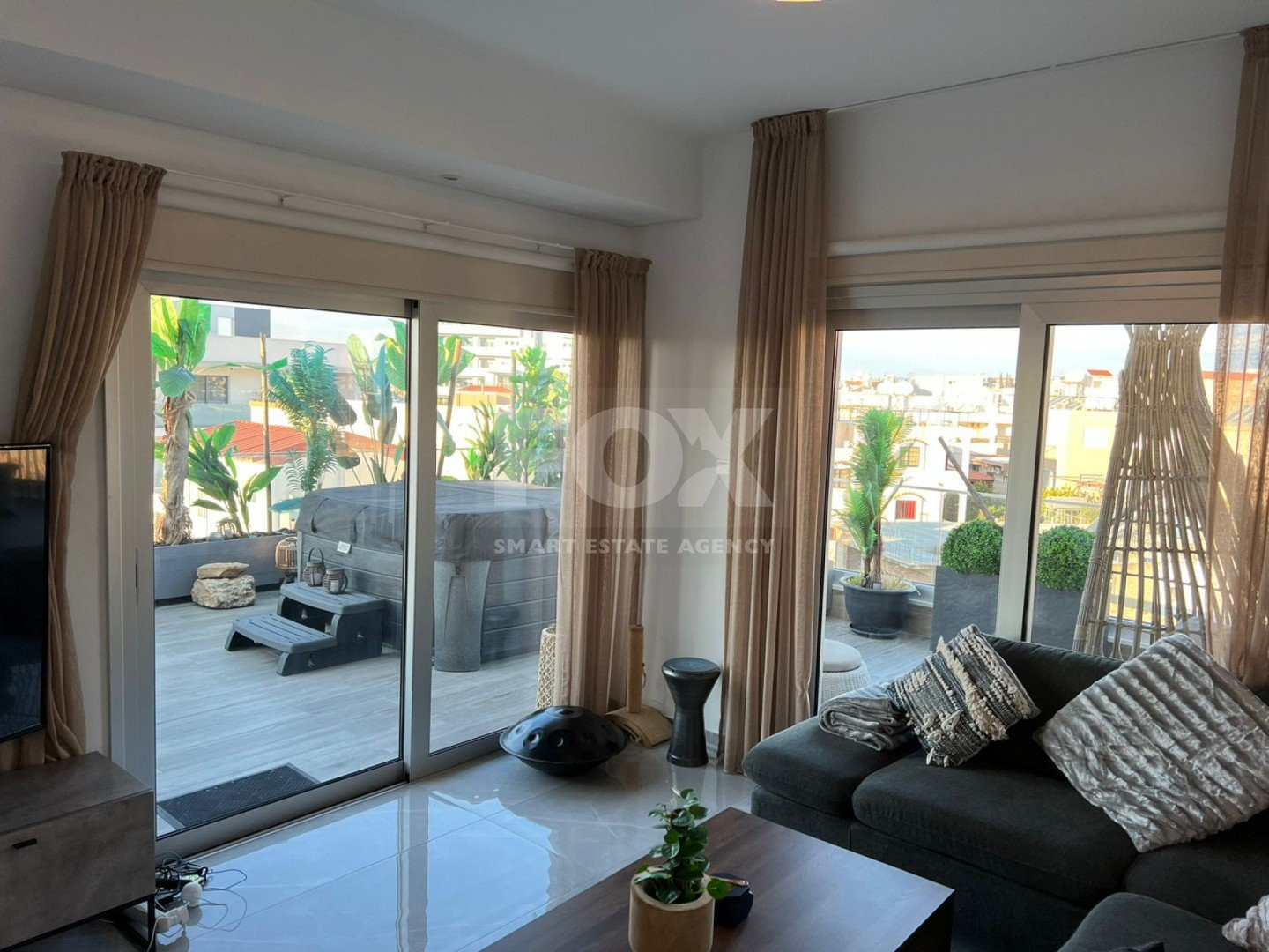 A lovely 2bedroom Penthhouse that become soon to a 3bedroom apartment. A beautiful area surrounded by various restaurants, shops, and more.It features 2 bedrooms (1 en suite), a family bathroom, a fully equipped kitchen and a beautifully decorated living room. At the External of the apartment you can enjoy the big veranda and the Jacuzzi!Also, you can find all the electrical appliances and two covered parking places!