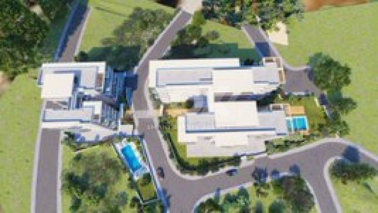 This development offers a selection of 2 and 3-bedroom apartments, most of which feature stunning sea views. Residents can enjoy a range of amenities, including communal swimming pools for each block, solar panels for enhanced energy efficiency, and a contemporary architectural design with sleek lines, large windows, and concrete finishes.