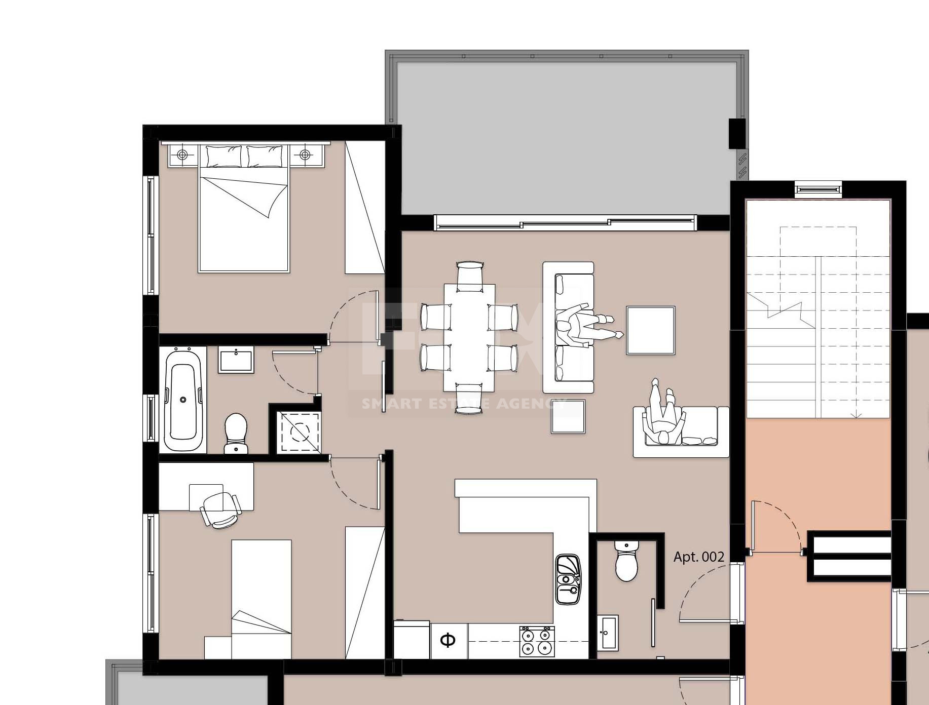 For sale: Spacious 2-bedroom apartment under construction in the desirable Panthea area. This modern home offers 81.72 m² of internal space plus 16.18 m² covered verandas, providing plenty of room for comfortable living. With 2 well-designed bathrooms and an open layout, it is perfect for families or couples looking for a new home.