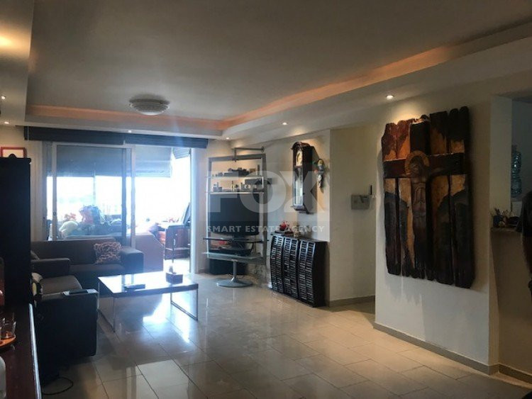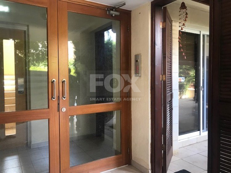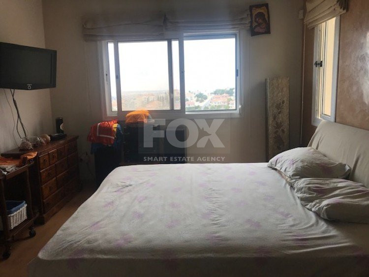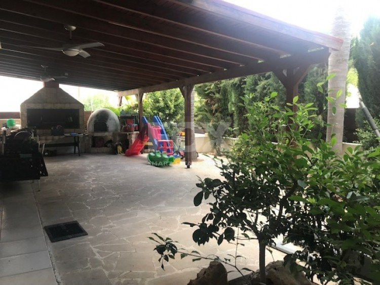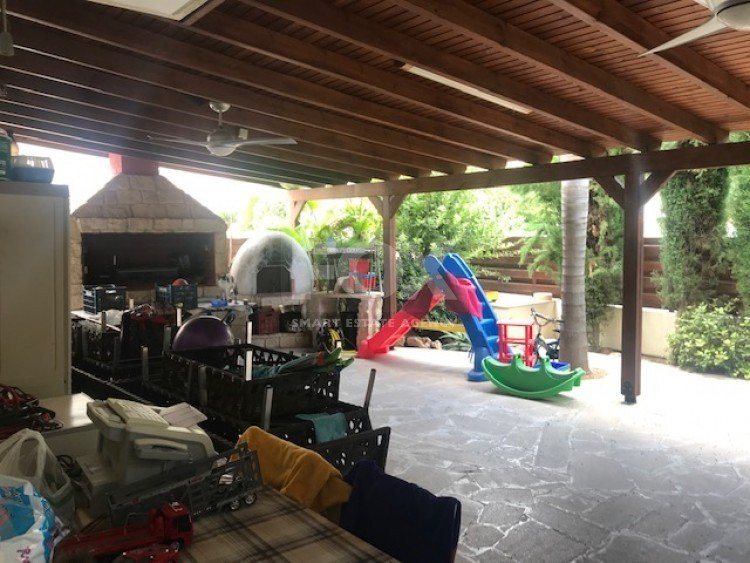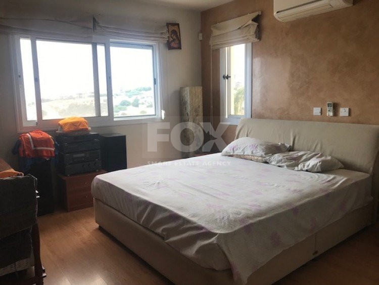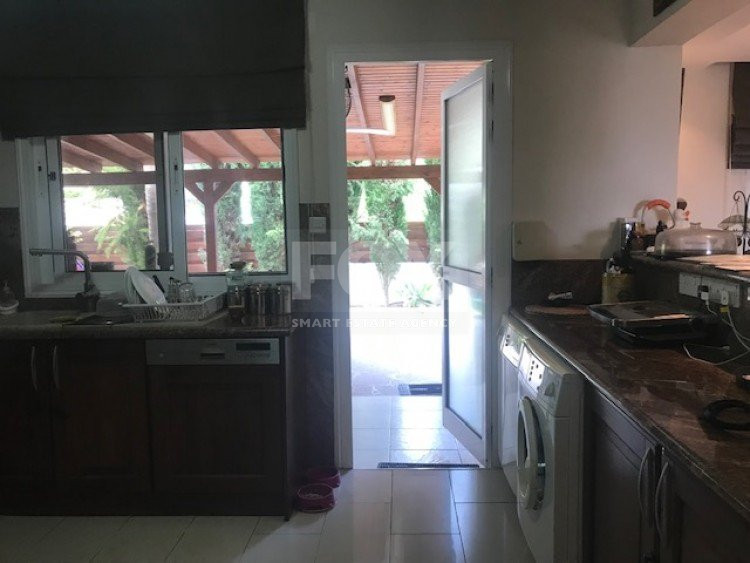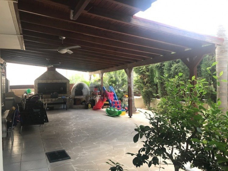 This ground floor 3 bedroom apartment is in the sought after location of Panthea.The apartment has a private entrance and also a private garden which is secluded around with trees and offers BBQ and clay oven with large covered pergola.There are comfortable sitting/dining areas with large covered balcony which has been closed around with windows for all year around use, guest wc, main bathroom, three bedrooms with fitted wardrobes,master bedroom en suite.A/C throughout, covered parking and storage area.Sea views.