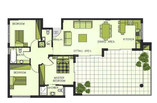 • Total covered area: 98 m²