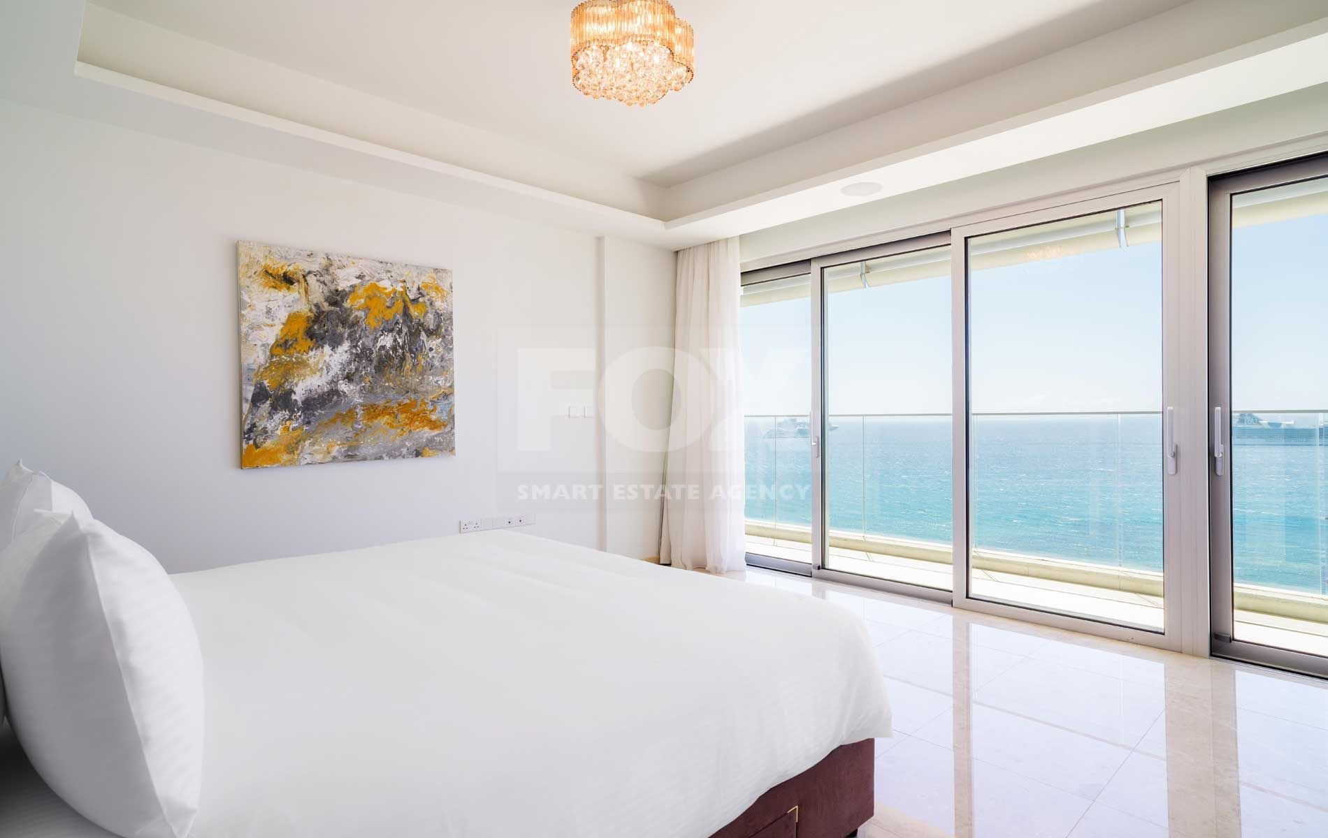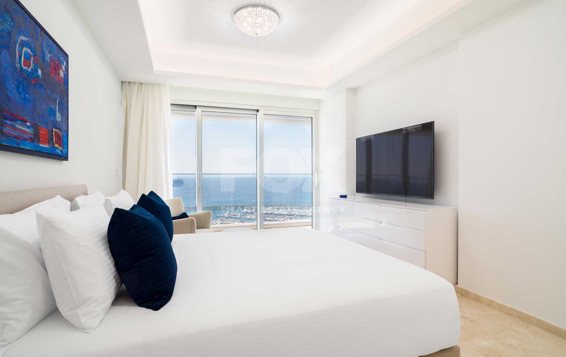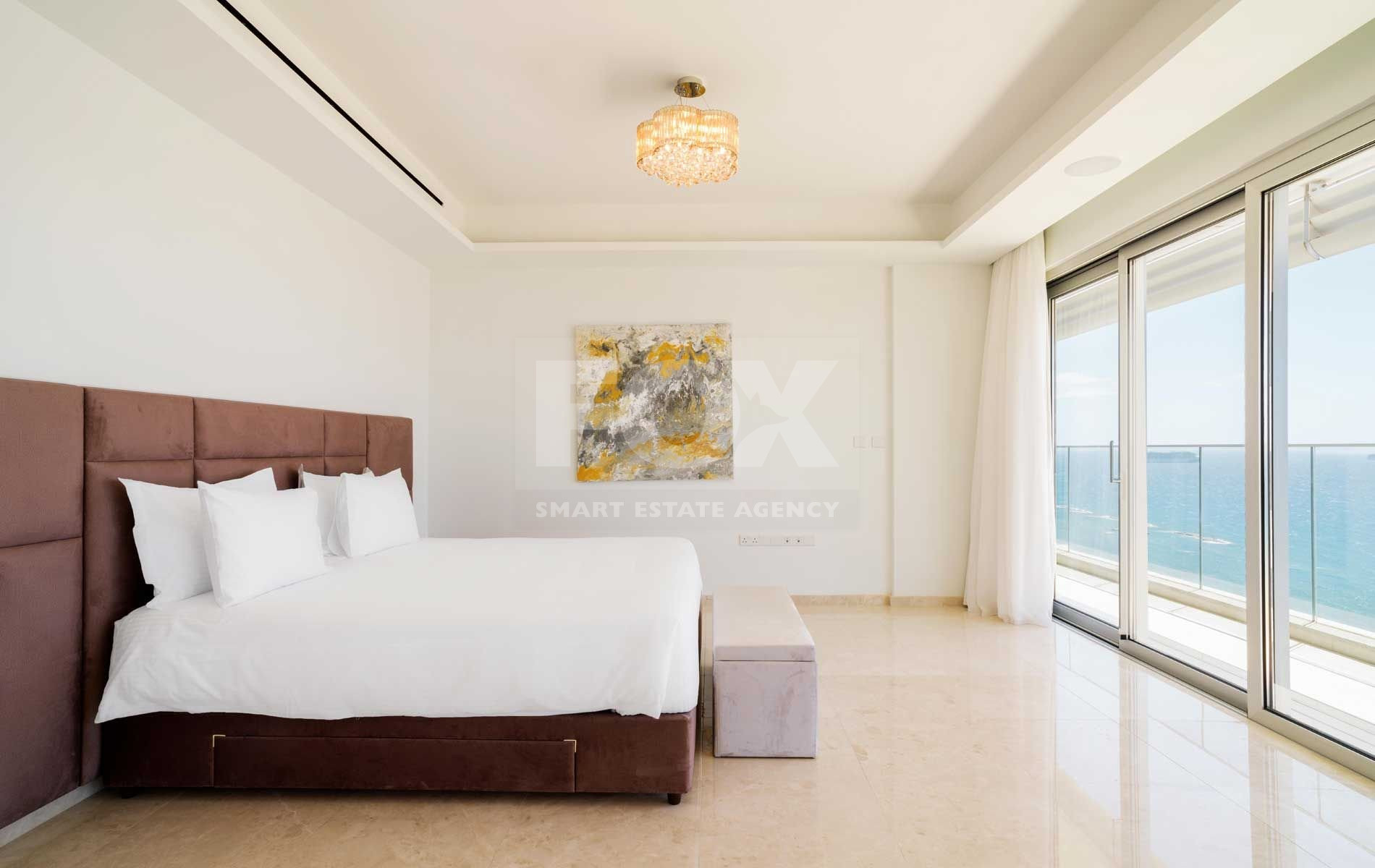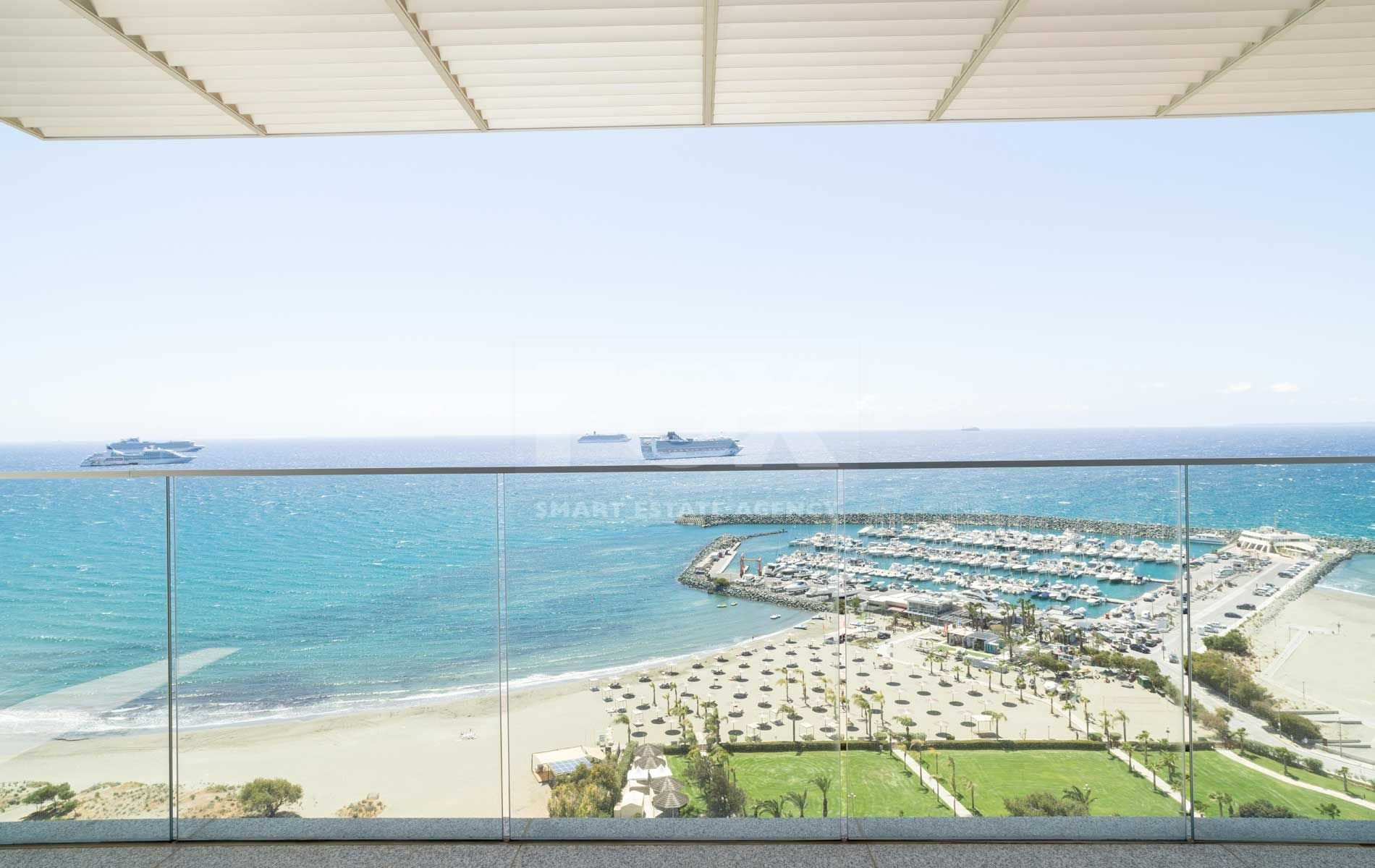 If you are looking for the best Cyprus has to offer, then look no further. This luxurious villa on the top of this amazing residence is a two-storey penthouse on the 11th and 12th floors (level 13 and 14). The twelfth and highest floor boosts the most magnificent views in Limassol, overlooking the private marina, gardens and simply the whole Limassol Bay with unobstructed and unrivalled views. The penthouse has every top-quality finish, with Crema Marfil stunning marble, top Italian brushed gold and wooden tailor-made kitchen, an office and four large bedrooms, all with ensuite. The kitchen has its own service entrance, a must for entertaining and there is a large, covered terrace on the 12th floor. The bedrooms are all situated on the 11th floor and there is a beautiful sweeping staircase connecting the two levels. All amenities have been considered in this state-of-the-art penthouse and every smart home option has been incorporated. There is a large walk in wardrobe in the master bedroom and breath-taking views can be enjoyed from the freestanding Villery & Boch bathtub.
