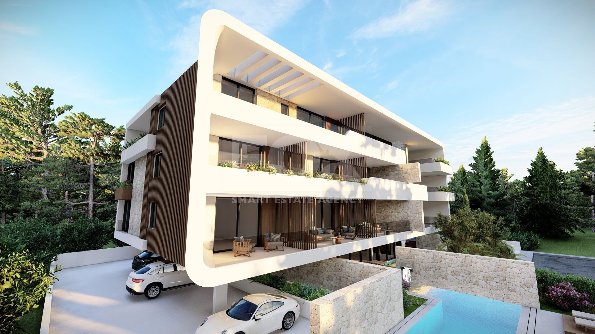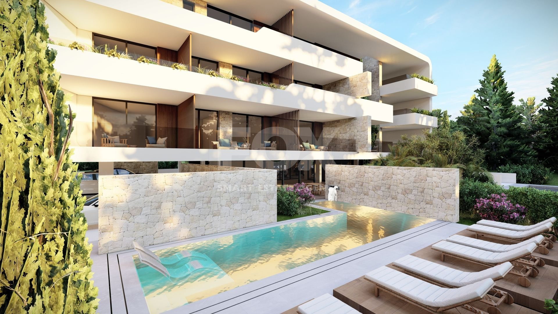 The project features a thoughtful mix of studios, one-bedroom, and two-bedroom units, all designed to capture stunning sea views. Set at the end of a quiet road and surrounded by greenery, it ensures a peaceful living environment while remaining close to the action. Upper floors enjoy sweeping vistas of the Mediterranean, perfectly balancing natural beauty with modern design.