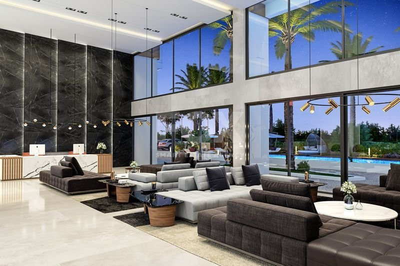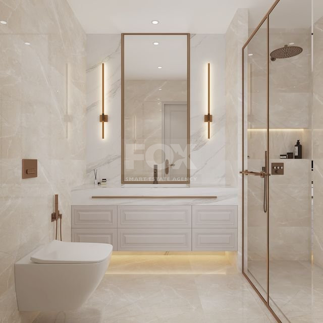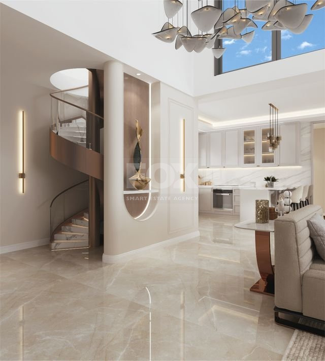 The layout includes five bedrooms and four modern bathrooms, making it ideal for larger families or those who appreciate extra space. The apartment comes unfurnished, giving you the opportunity to style your new home to your taste. It features a central AC system and underfloor heating, ensuring comfort throughout the year.