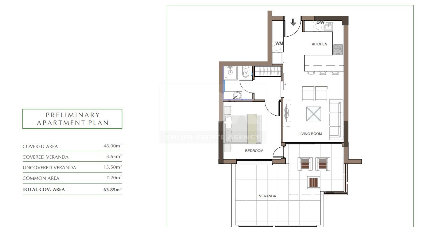Total Covered Area: 63.85 m²