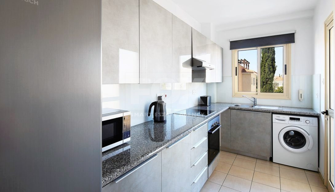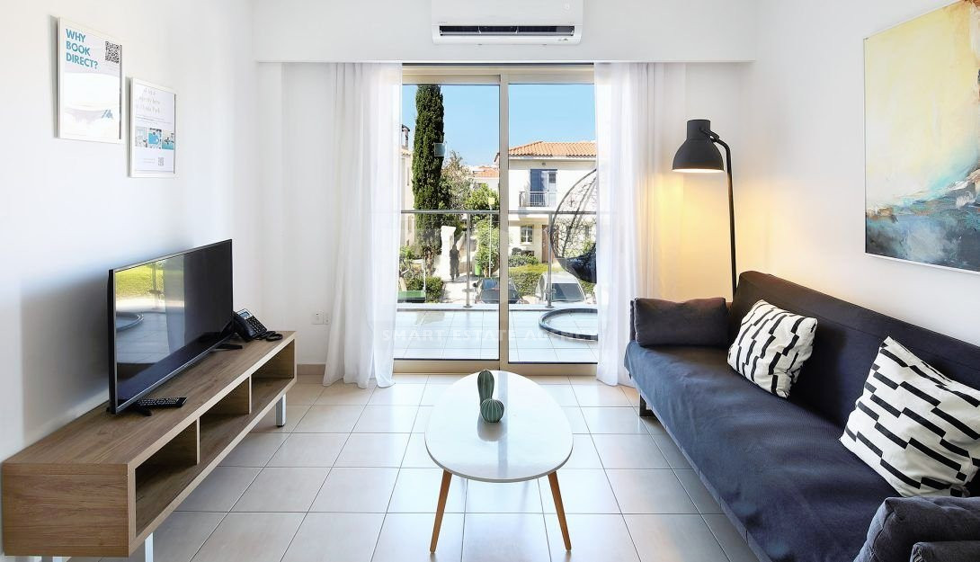 The apartment is located on the 1st floor of the building and offers spacious and inviting living areas. The open-plan living and dining area leads to a large balcony perfect for al fresco dining in the summer. The property comprises two double bedrooms, a family bathroom and comes fully equipped with appliances, furniture, and air conditioning.