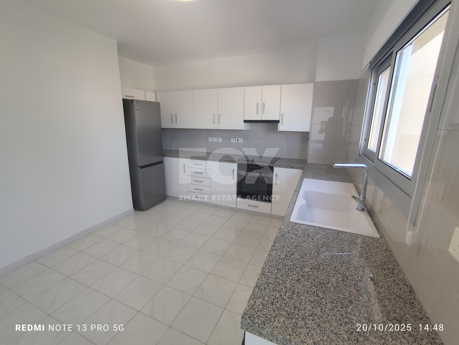 It has separate kitchen, with living area , three bedrooms (one of them en-suite), guest w.c , one family bathroom , fire place and safety door as well.