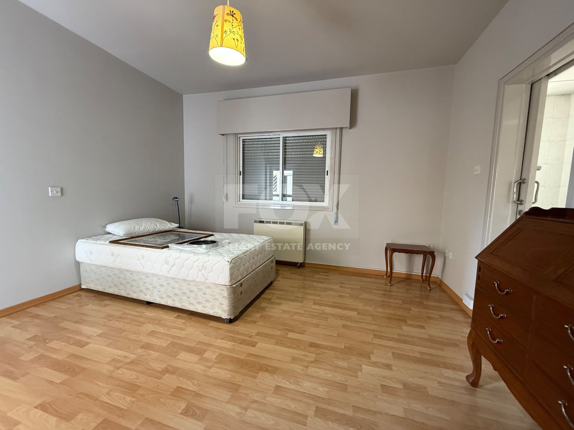 Marble flooring in living areas, parquet in bedrooms