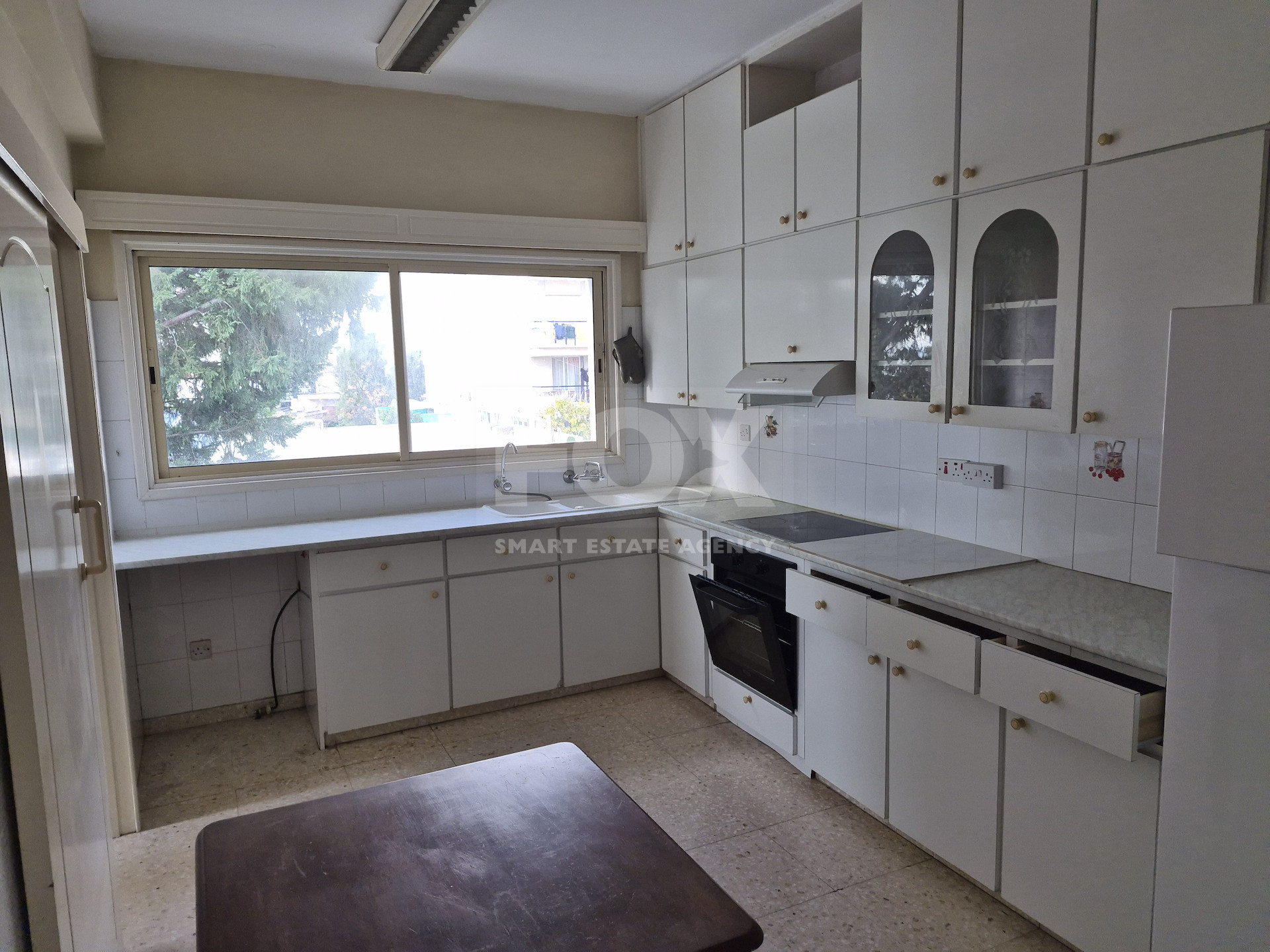 The kitchen is partially furnished and provides generous storage and workspace.