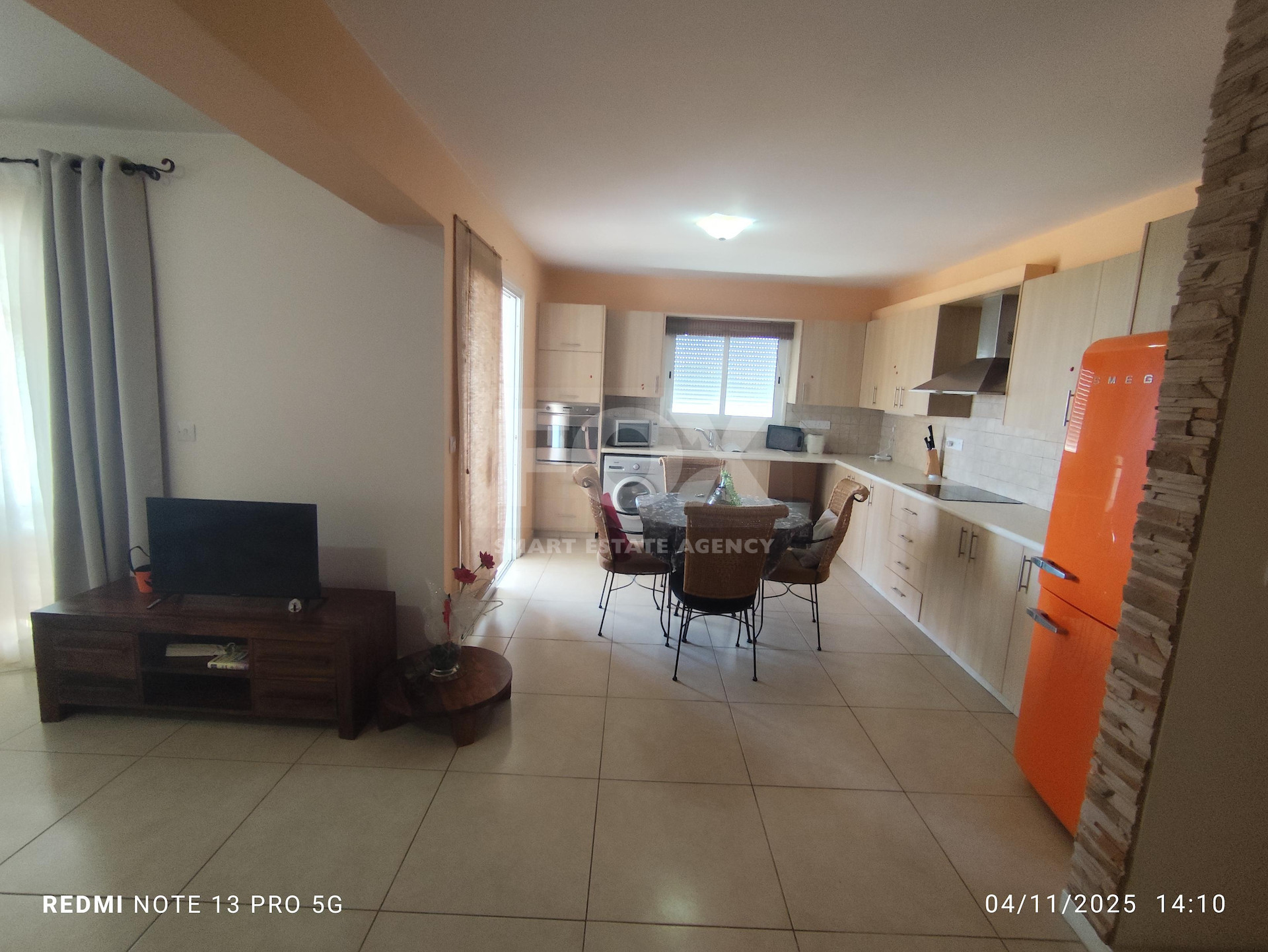It has an open plan kitchen, with living/dining area , three good size bedrooms (one of them en-suite) , family bathroom , guest w.c., a/c in all areas and safety door as well. There is also nice veranda to enjoy your coffee and one covered parking space. It is fully furnished and has all the electrical appliances such as microwave etc..