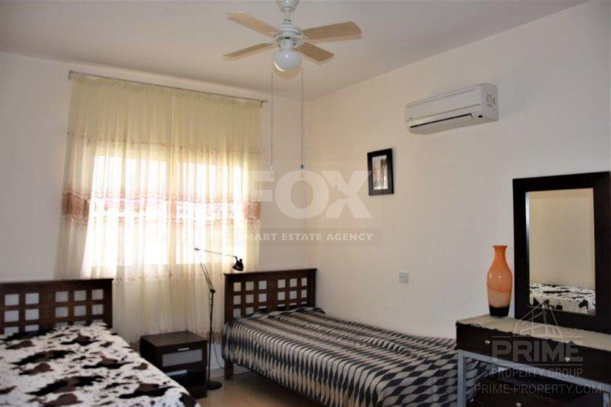 For rent is a modern, fully furnished two-bedroom apartment in the heart of Kato Pafos. The layout features an inviting open-plan living and dining area, a well-equipped kitchen, two spacious bedrooms, and a modern bathroom.