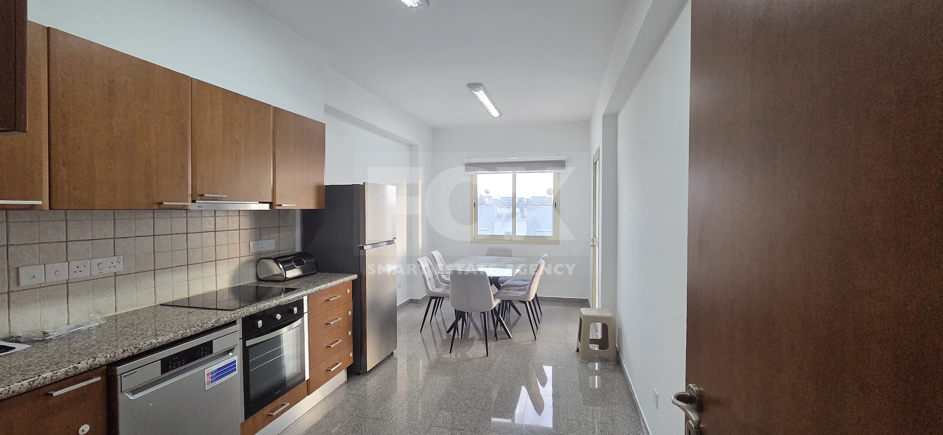 A recently renovated three-bedroom apartment located in a quiet residential area of Mesa Geitonia, offering easy access to Spyrou Kyrianou Avenue, the highway, and all main road arteries.