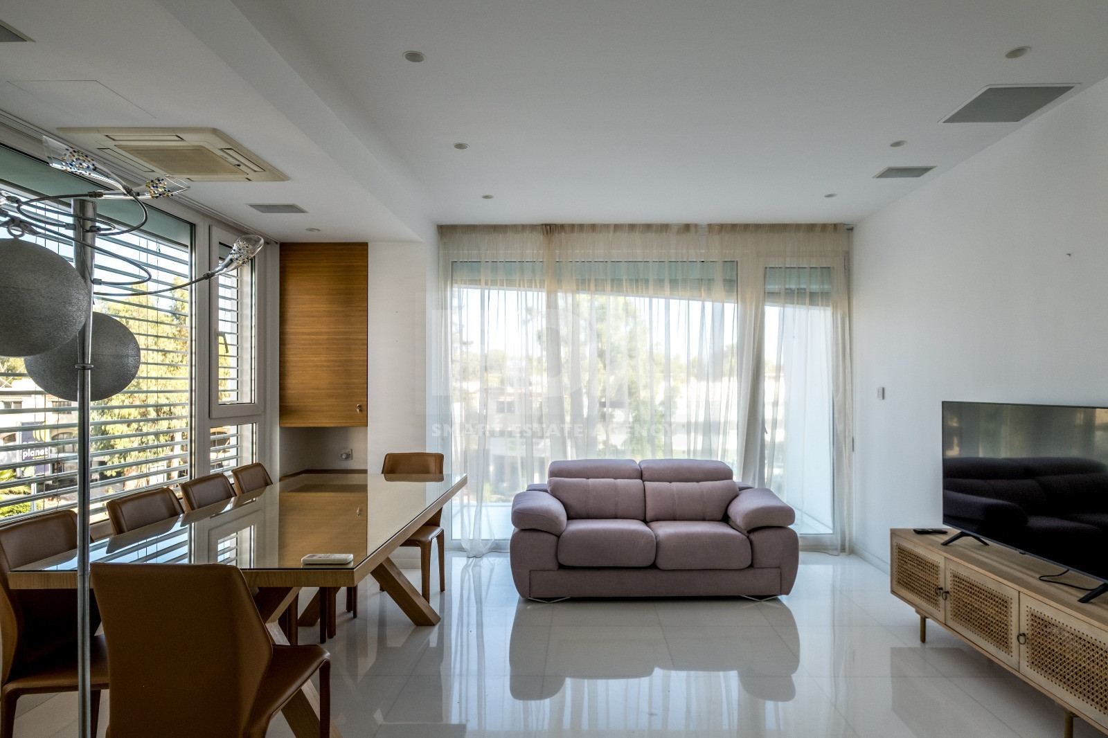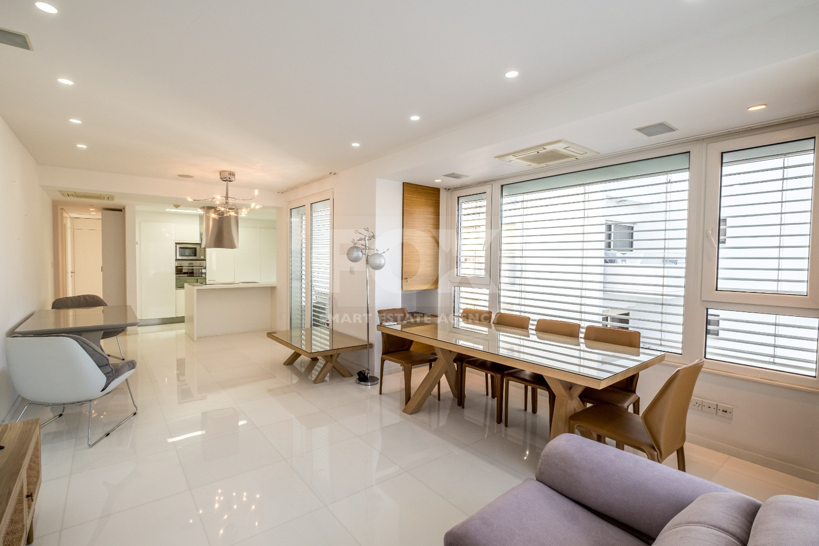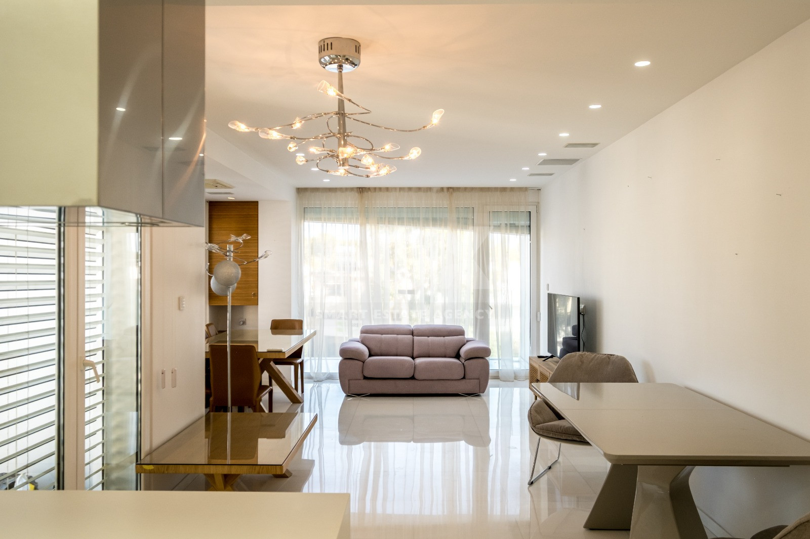 Located on the second floor of a gated building, the apartment features a well-designed interior with spacious living areas finished with Thasos marble flooring and laminated wooden floors in the bedrooms. The island kitchen is fully equipped with built-in appliances, while the apartment offers two bedrooms, including a master bedroom with en-suite, as well as a main bathroom with jacuzzi. A large covered veranda extends the living space outdoors, perfect for relaxing and enjoying the vibrant seafront atmosphere.