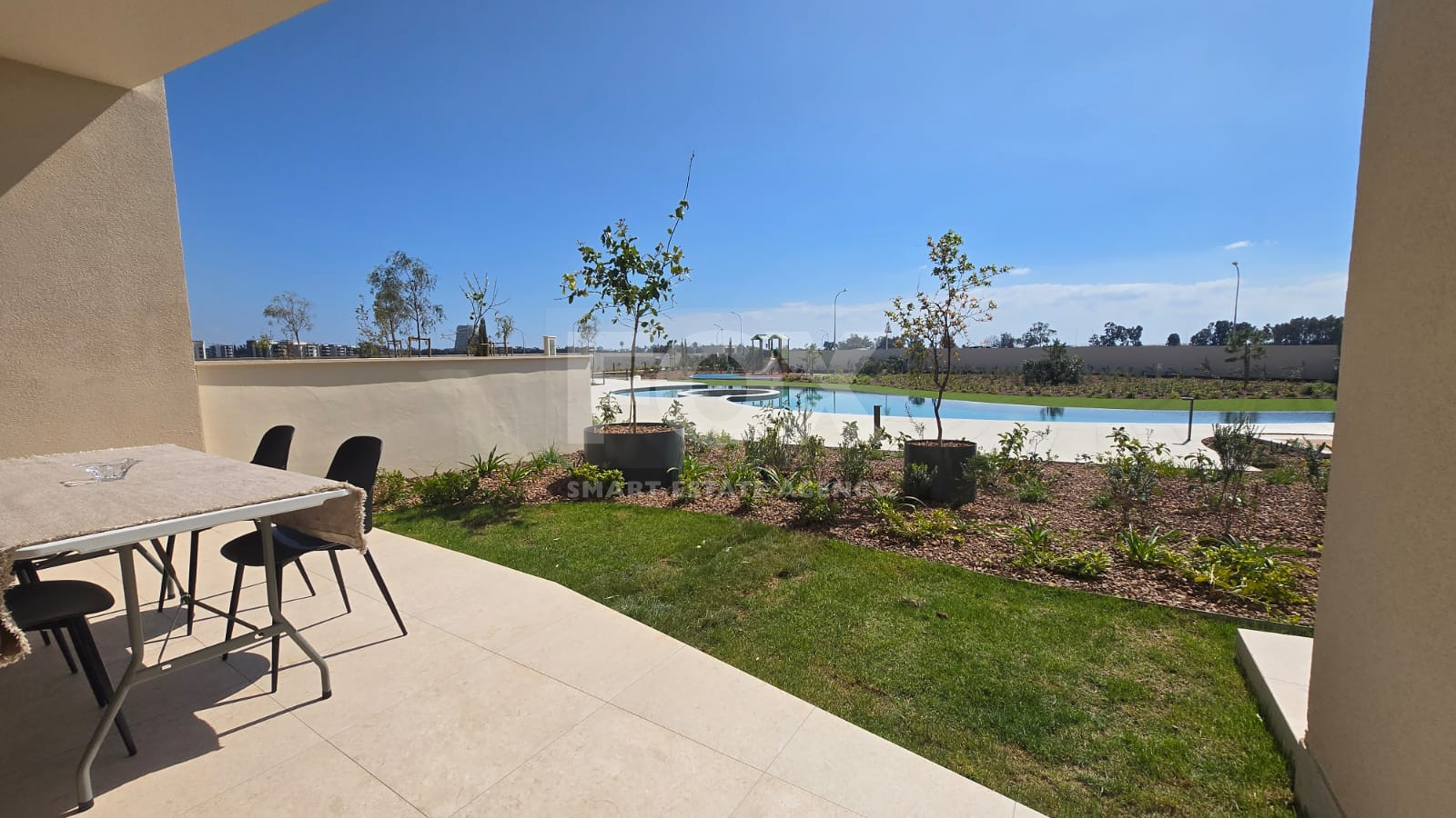The apartment offers 88 m² of internal covered area and enjoys a front veranda and private front yard, directly overlooking the swimming pool, landscaped green areas, and the golf course. All main areas of the property, including the living room and both bedrooms, benefit from these uninterrupted views, creating a seamless connection with the surrounding environment.