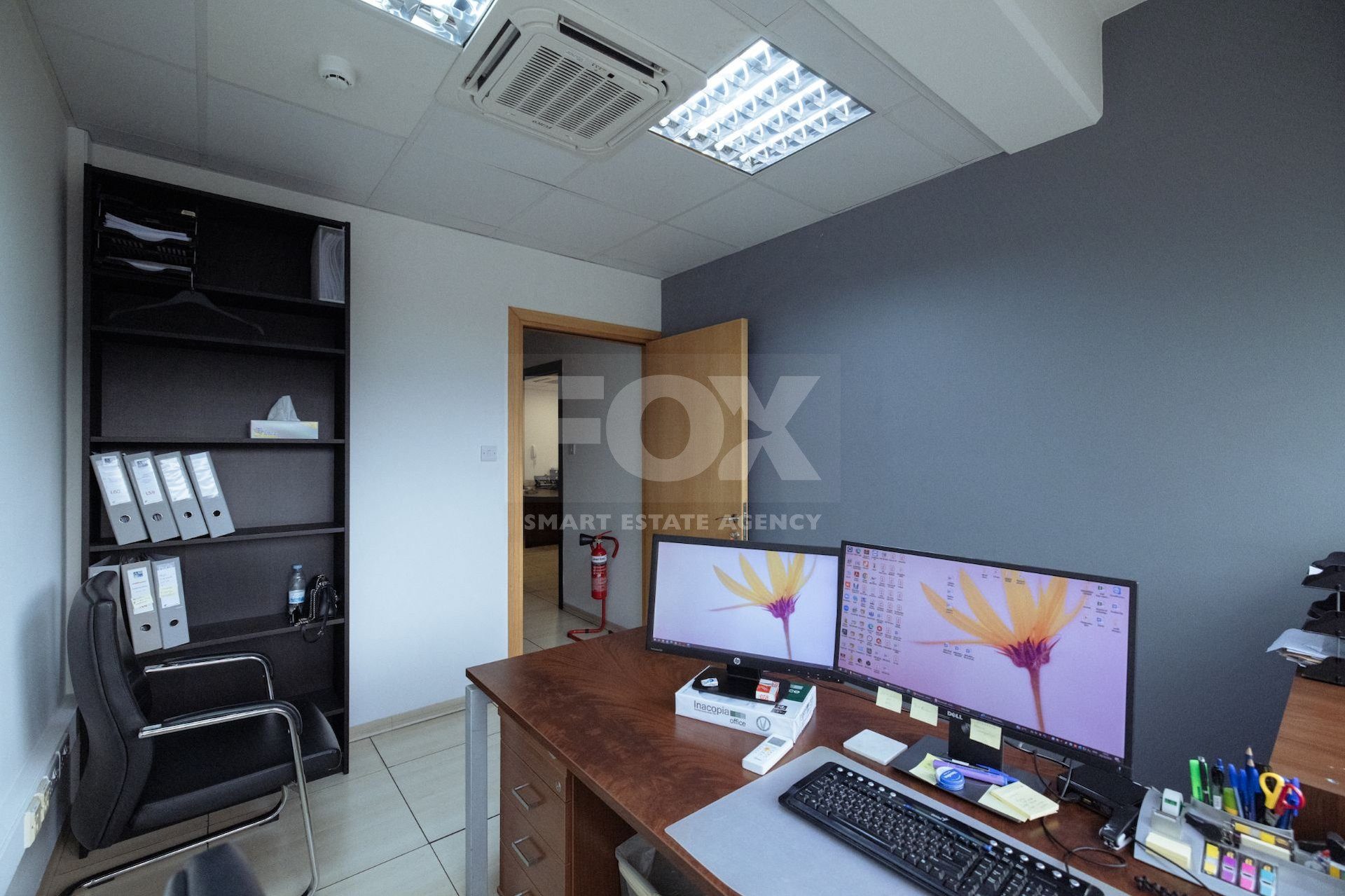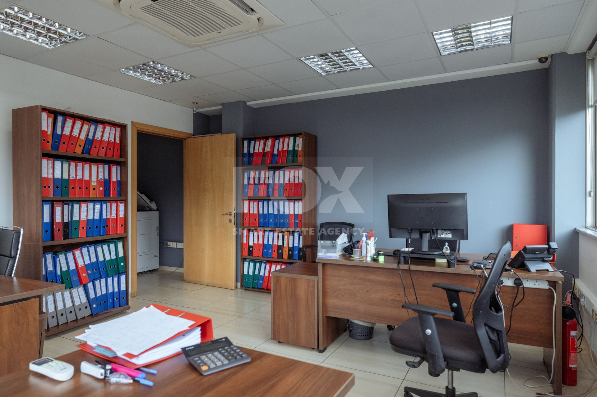 The layout includes five bathrooms, adding convenience for both staff and visitors. The property also features a basement, which can be utilized for storage or additional business operations. Positioned on a large plot, there's ample outdoor space for parking or future expansions.