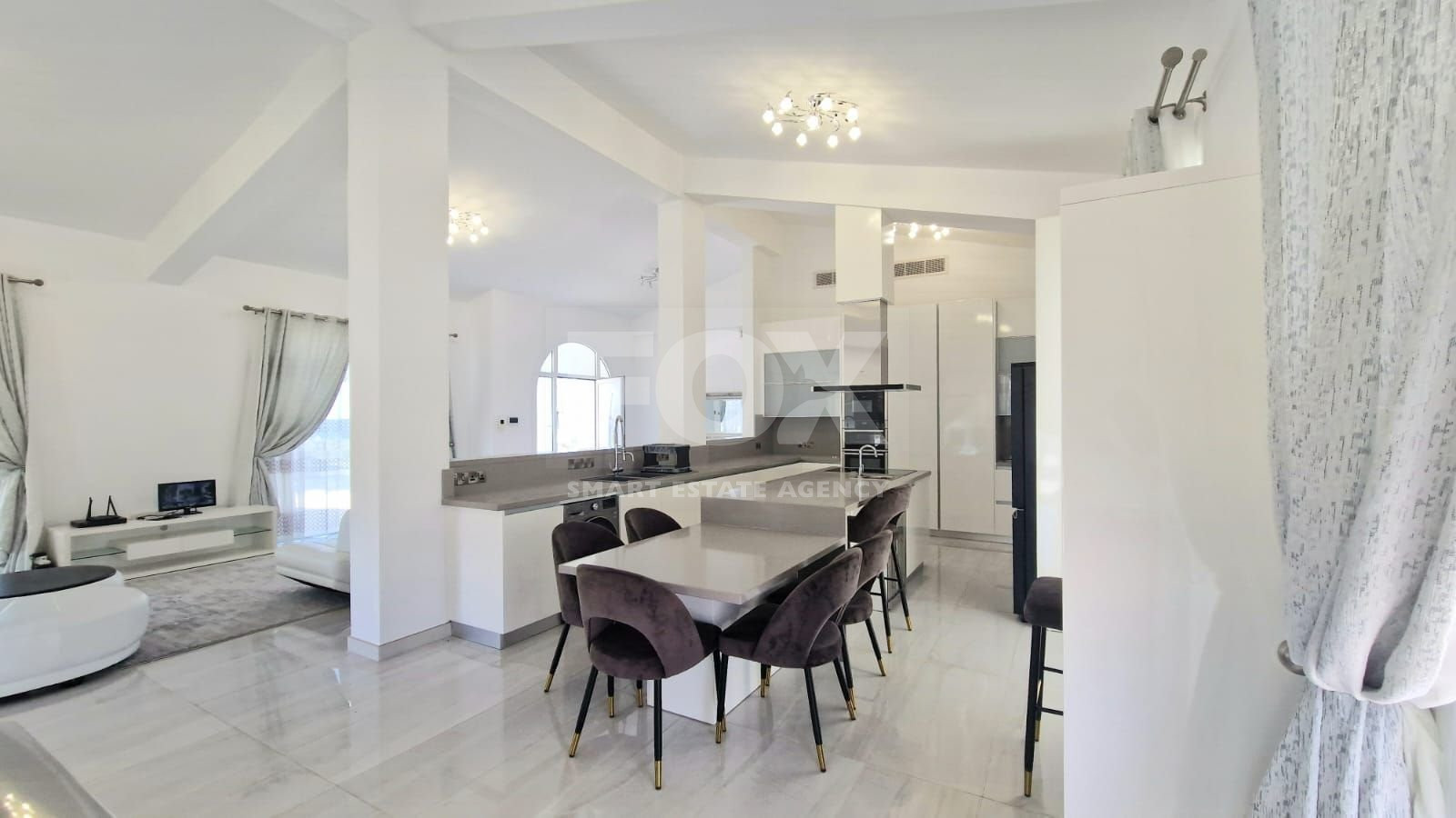 The property is set on a large plot with a private swimming pool and landscaped gardens. Fully furnished to a high standard, this home is ready for you to move in and enjoy. Its open-plan layout is flooded with natural light thanks to the large south-east facing windows, which perfectly frame stunning sea views.