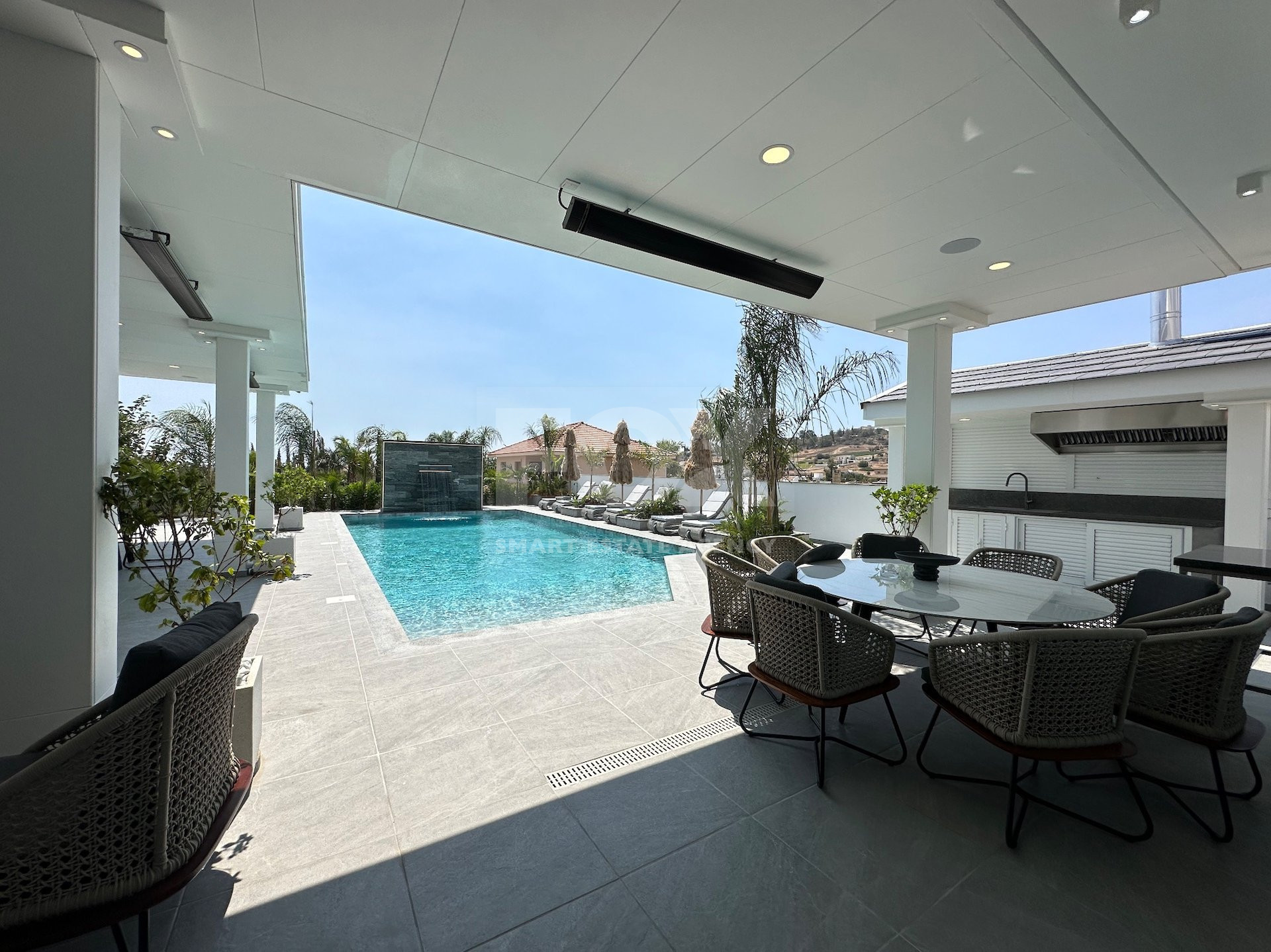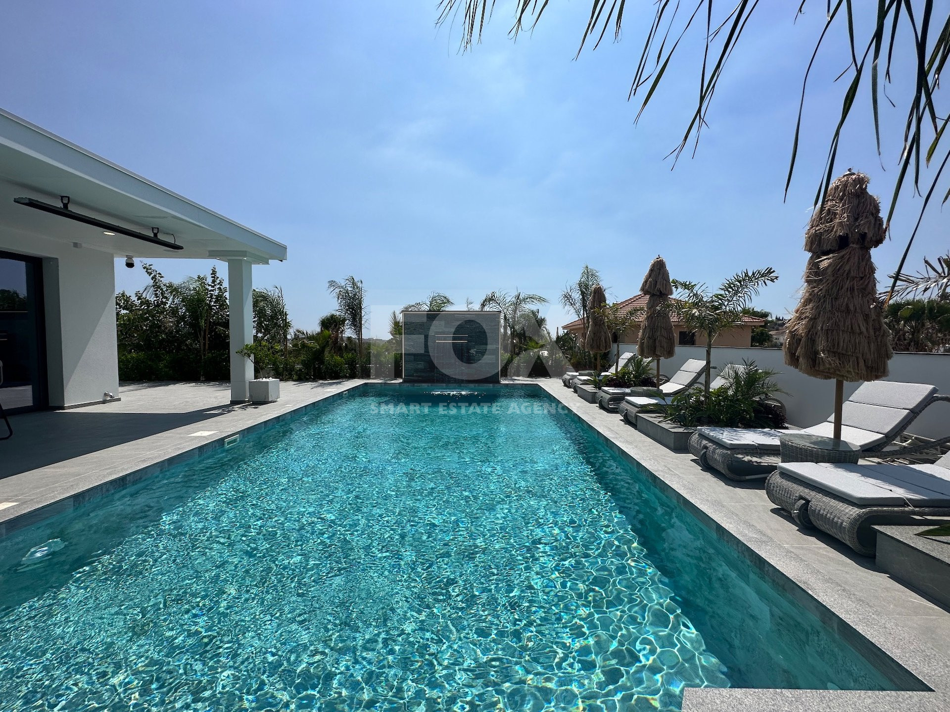 Landscaped garden, private pool, and solar water heater.