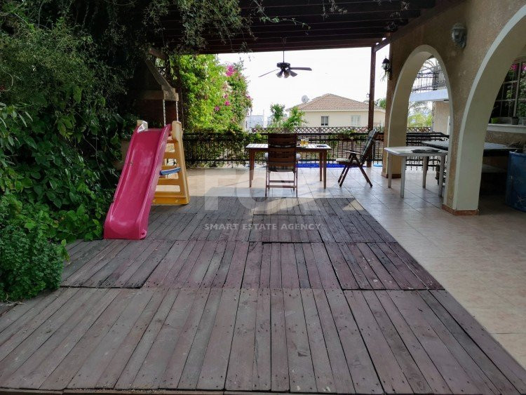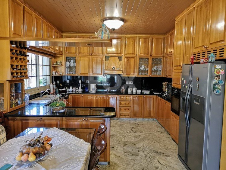 A fabulous property, custom built to the highest standards in one of the most sought out residential areas within 3 minutes to central roundabouts and easy access to all amenities and schools. The house has a covered area of 350m2 and 80m2 covered verandas on a plot of 1070m2. Consisting of 4 bedrooms plus extra maids quarters, this lovely home also offers 2 kitchens with granite counters with top quality electrical appliances. The living/dining area is accompanied by the comfort of a fireplace. Master bedroom includes very own ensuite, and another two bathrooms are available, one with Jacuzzi and a guest w/c. Marble flooring covers the sitting areas, whereas in the bedrooms parquet flooring is laid out. Air condition units are equipped throughout and there is also central heating. There is covered parking for two cars and plenty of storage space. Outside you can sit under the pergola and enjoy the pleasure of a private swimming pool which uses salt instead of chlorine. Enjoy the outdoors amongst the beautiful mature gardens provided.