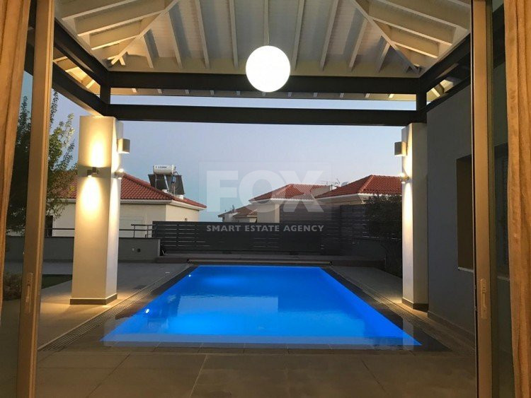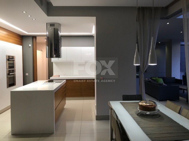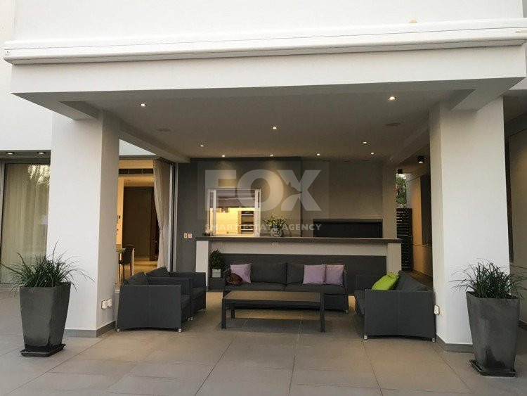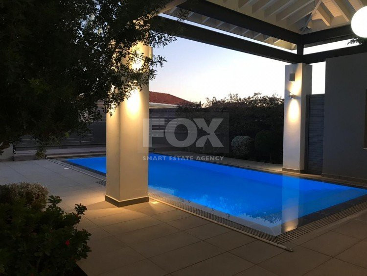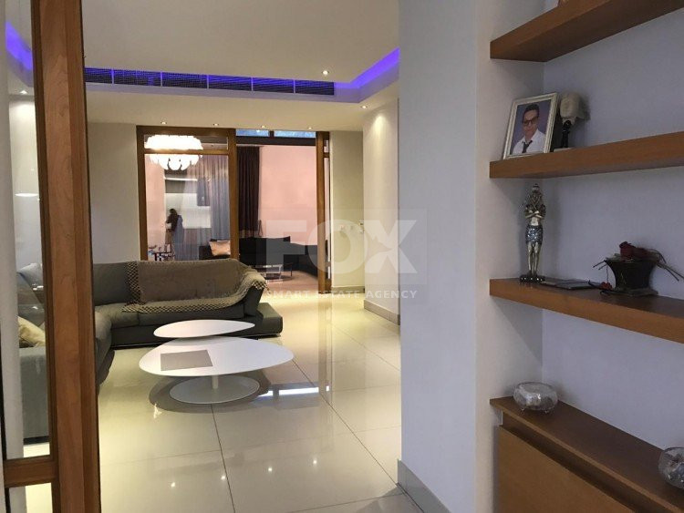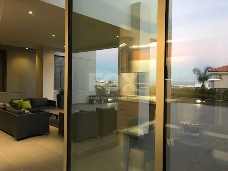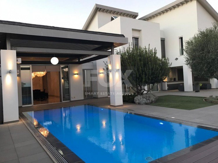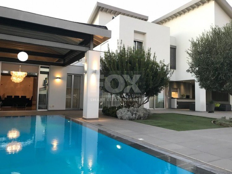 A luxury villa on three levels consisting of ground level, first floor and basement area. Situated on a corner large plot of 970m² south facing, securely gated around with landscaped gardens for privacy. Comfortable sitting/dining /tv area with separate kitchen breakfast/diner and utility area. Patio doors from all sides give an inside out feel. The rooms have sliding doors within the walls which can partition areas or give an open connecting feel. Ground level also has guest wc/shower, and 4th bedroom/office/ chill out room. Upper level has 3 bedrooms, master en suite with walk in wardrobe, main bathroom, All bedrooms have balconies. Further utility/laundry area. The house if fully smart house system, fully automated with Siemens automation system, Central sound system with 4 zones, full wifi system and smart phone connection to house. Security CCTV cameras and alarm system, glass break sensors. Daikin climate system throughout the property, moreover under floor heating diesel. All windows are dual glass for noise and heat insulation. The swimming pool is overflow with salt water, hydraulic cover for safety purposes, outside shower/wc/jet shower. All lighting and feature lighting is LED. Elevator to all floors, all wooden surfaces and doors, built in furniture units are of walnut wood. The modern kitchen and utilty area are made of Dupont materials blended with Corean surfaces. The stairs and bathrooms are of marble. Large veranda with outside sitting area with electric cover, built in BBQ, and external kitchen for outside entertainment. Lower ground level has maids quarter with bedroom shower/wc with separate entry. Double electric garage that can accommodate 3 cars, large storage areas.