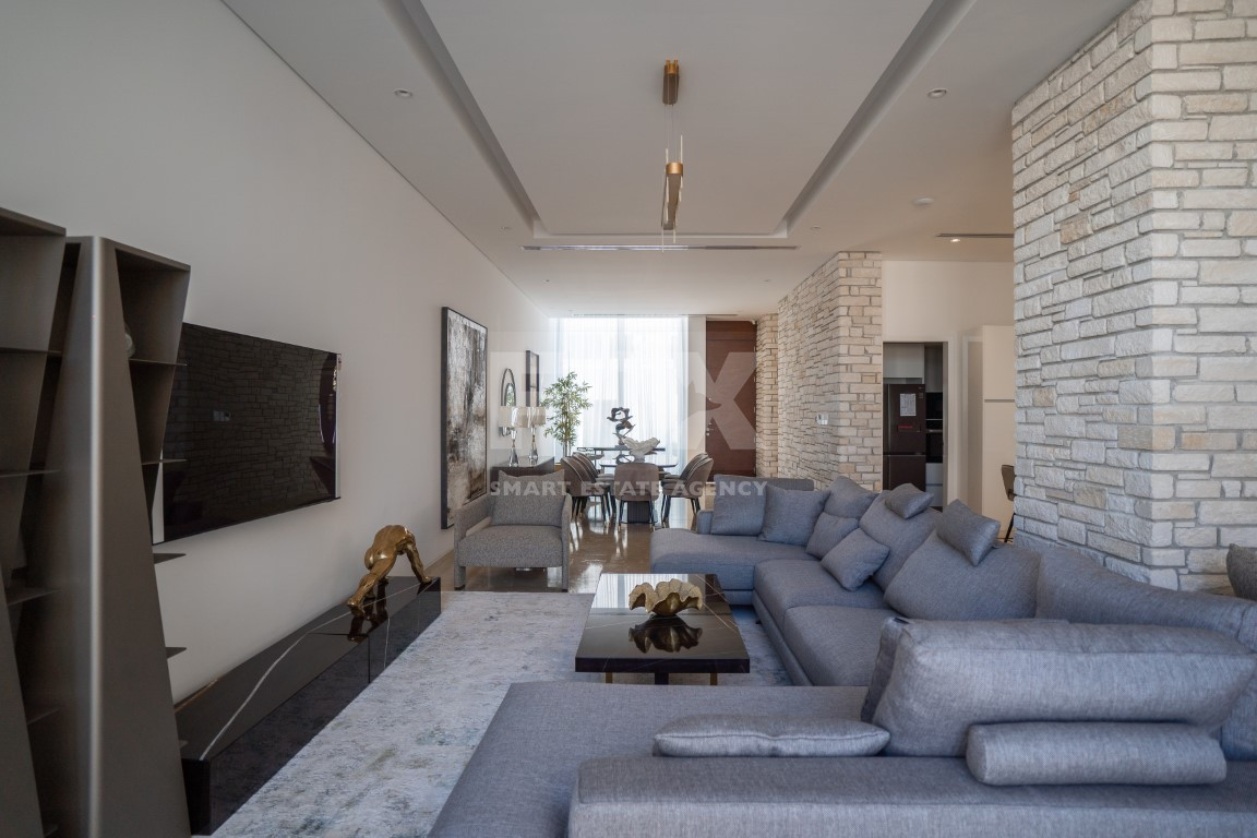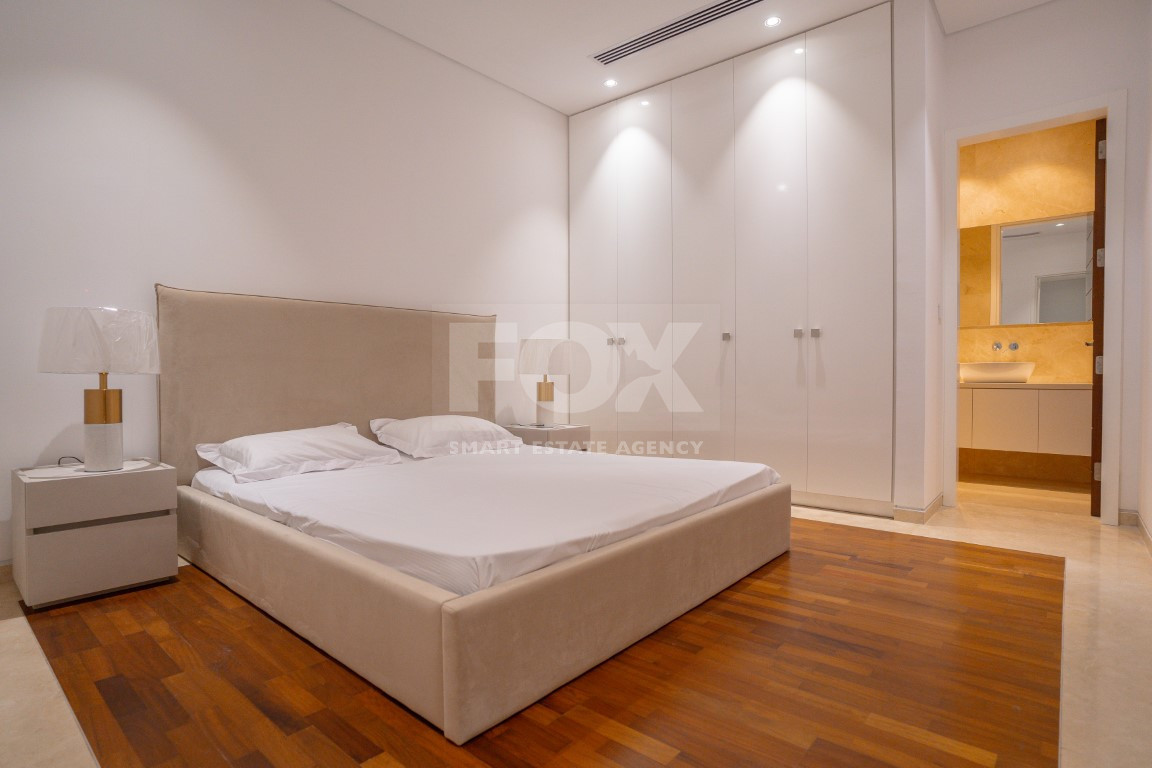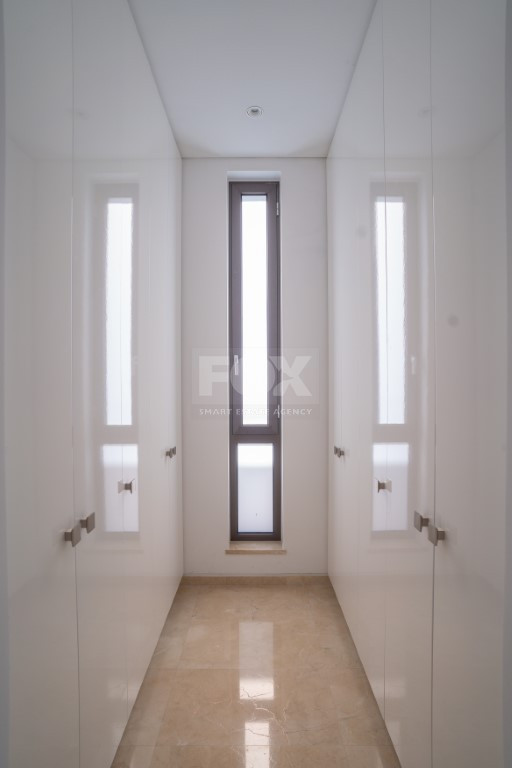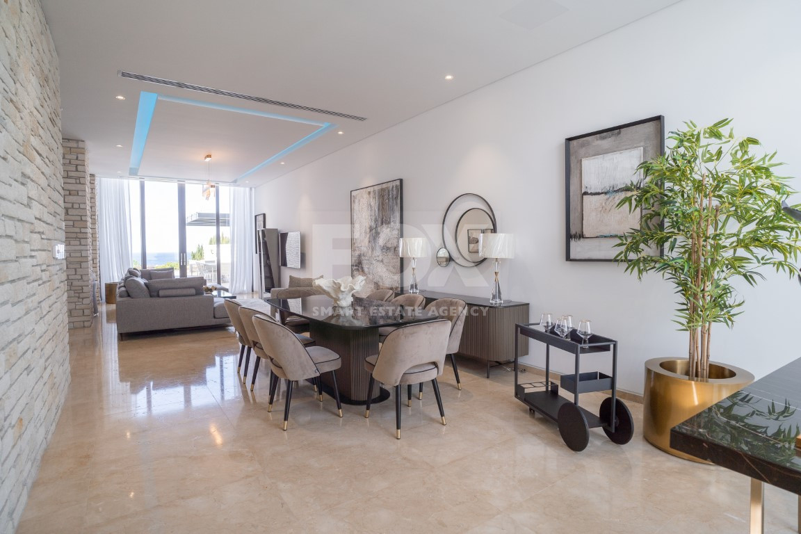 This exquisite five-bedroom villa features five bathrooms, a utility room, an office, a storage room, a dressing room, two kitchens, and two dining areas, complemented by a private lift for seamless access across all levels. Situated in a prestigious seafront area, the villa offers breathtaking panoramic sea and sunset views, blending elegance with modern functionality.