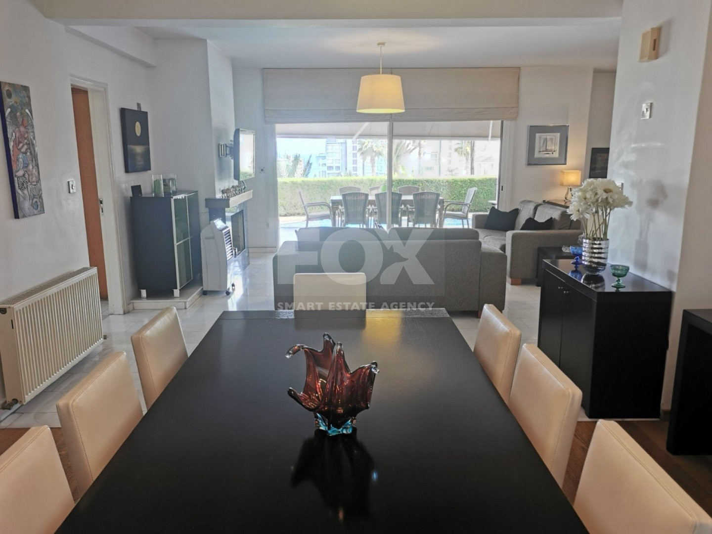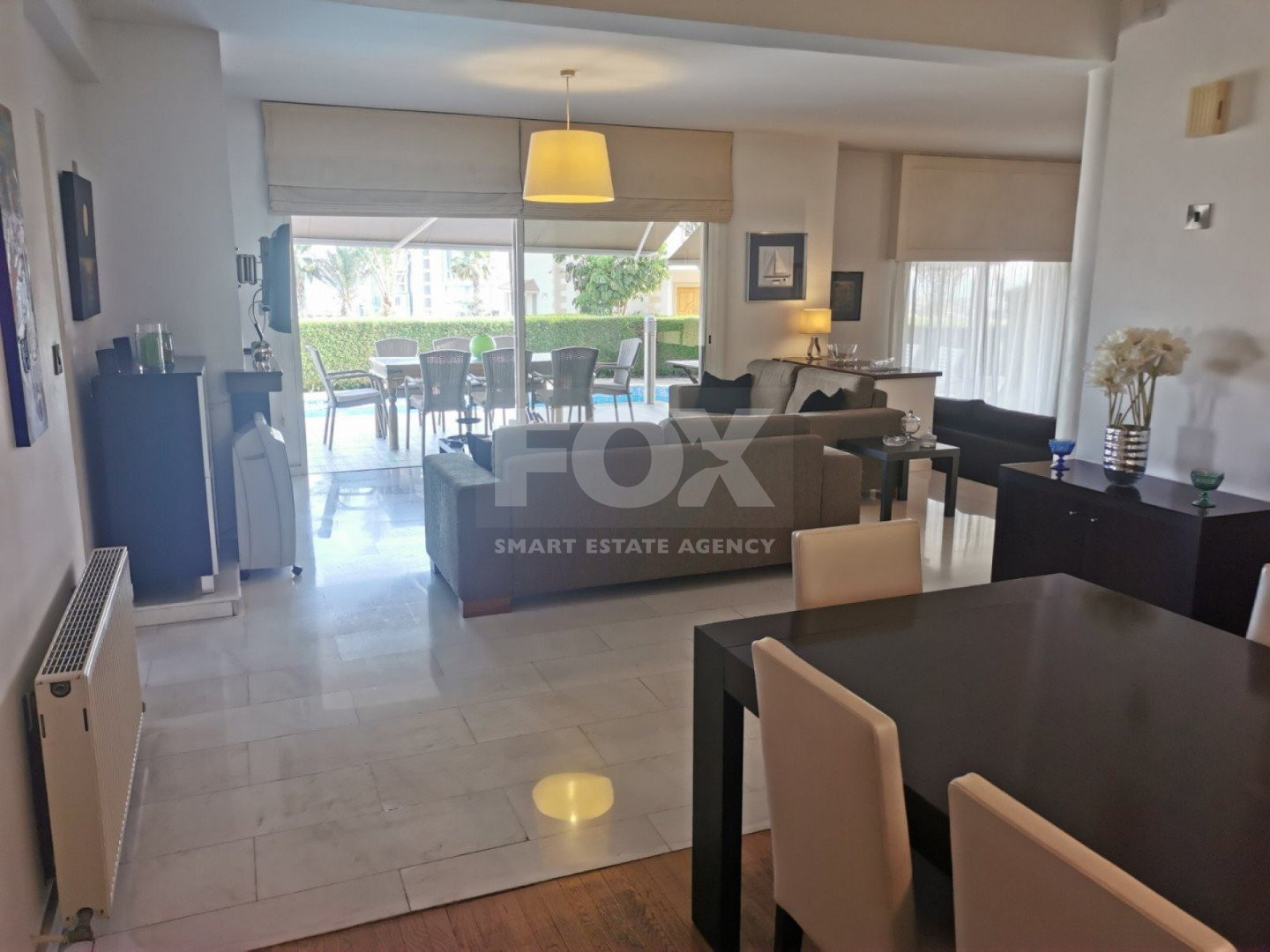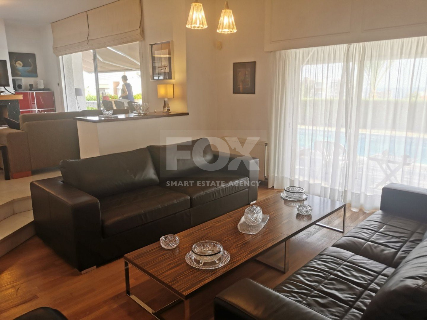 Lovely five bedroom villa in Agios Tychonas with swimming pool and sea view is available now.It has internal covered area 431 square meters and plot size 954 square meters. There is separate kitchen with two living rooms , one sitting room, two dining rooms and a guest w/c. Also there is a fire place, store room and one utility room.There are four bedrooms and one of them has en-suite bathroom, all with fitted wardrobes and a family bathroom on the first floor. Outside of the building there is a nice big garden with trees and flowers, with automatic watering system , large covered parking space for three cars with electric gate and barbecue.There is a maids-room , playing room and kitchenette. The aluminium doors and windows are double glazed with security locks. It has solar water heater with pressure. Also it has security system , alarm system, a/c in all areas diesel central heating and water drilling .The house is located on a hill of Agios Tychonas with view of Limassol and is only five minutes drive from the sea and ten minutes drive from Limassol City.Located in a quiet ,nice area surrounded by nice houses at a dead end road.It has quick access to all needed amenities including supermarkets, parks,schools, restaurants and beach.