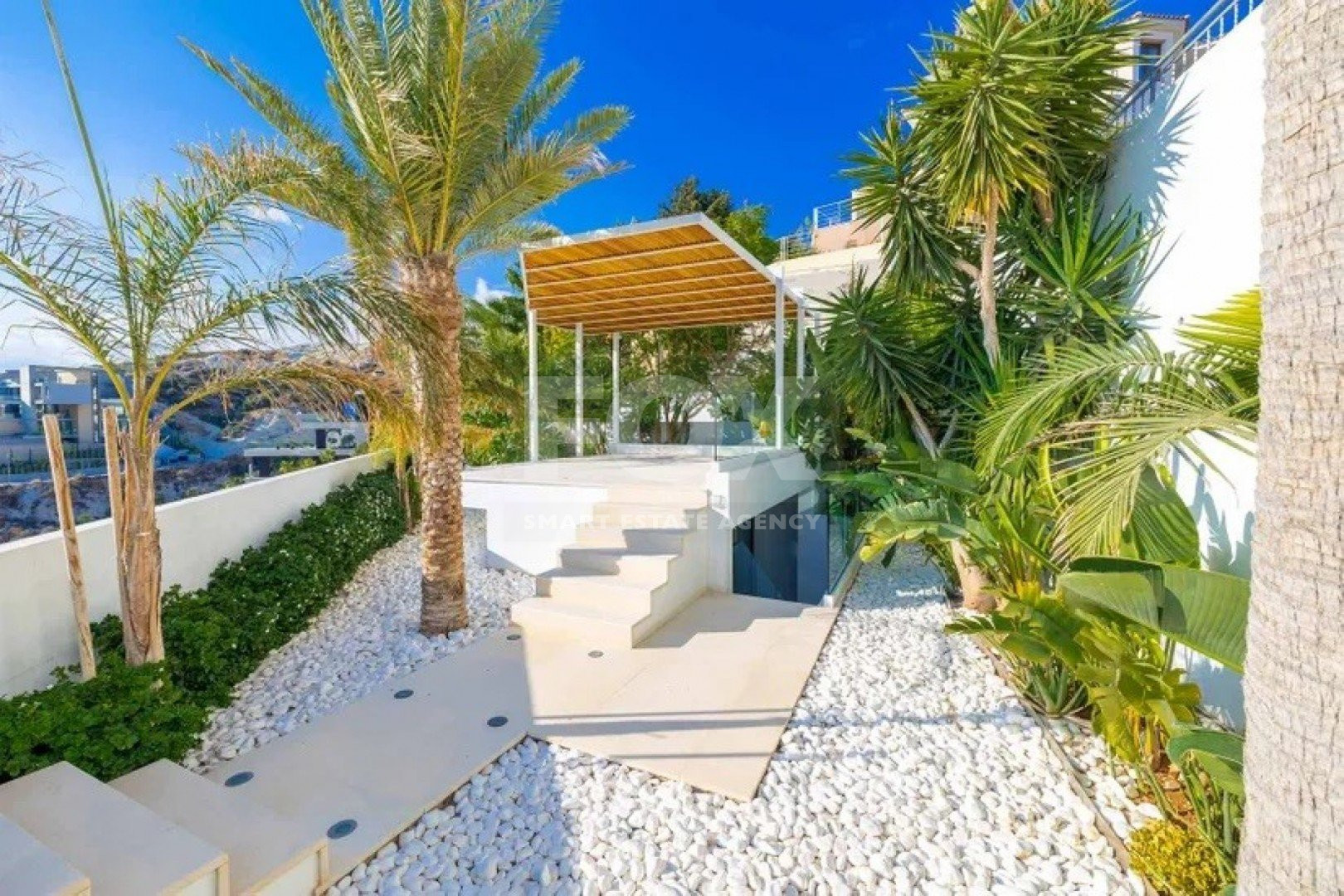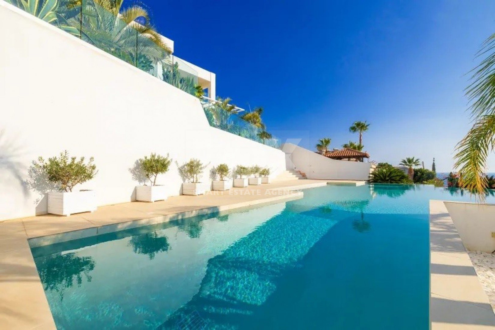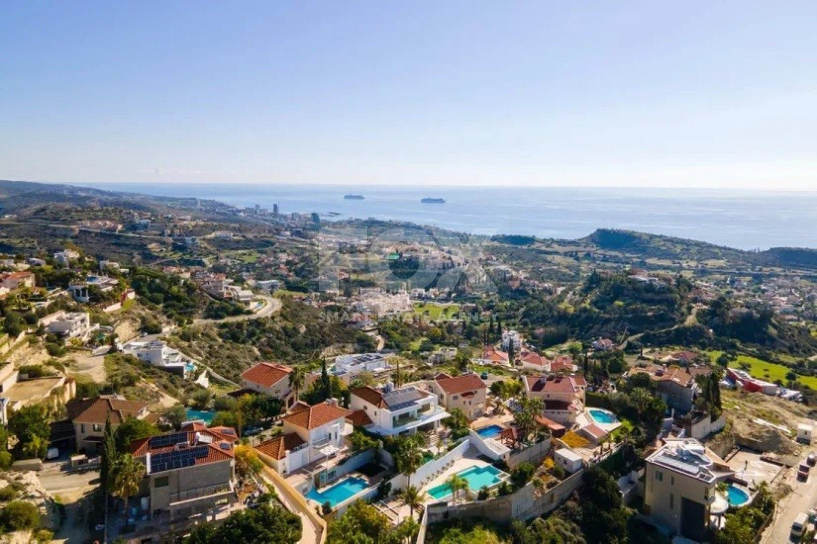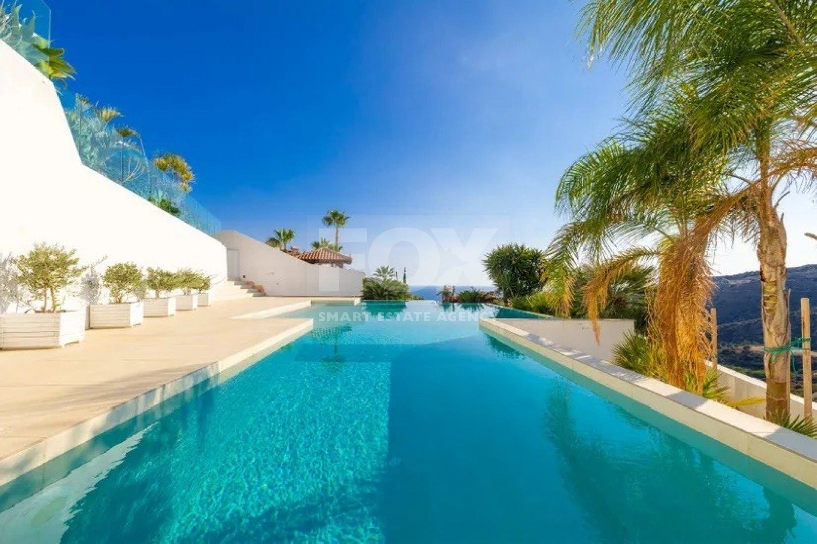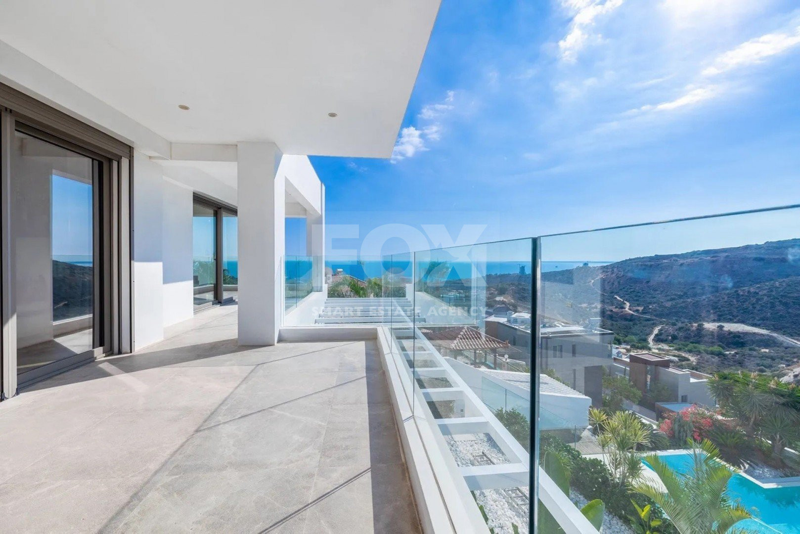 An elegant luxury resale 5-bedroom, two-storey detached Villa with mezzanine, external guest house, separate maid’s quarter, overflow swimming pool, amazing sea views of East Limassol coastline.