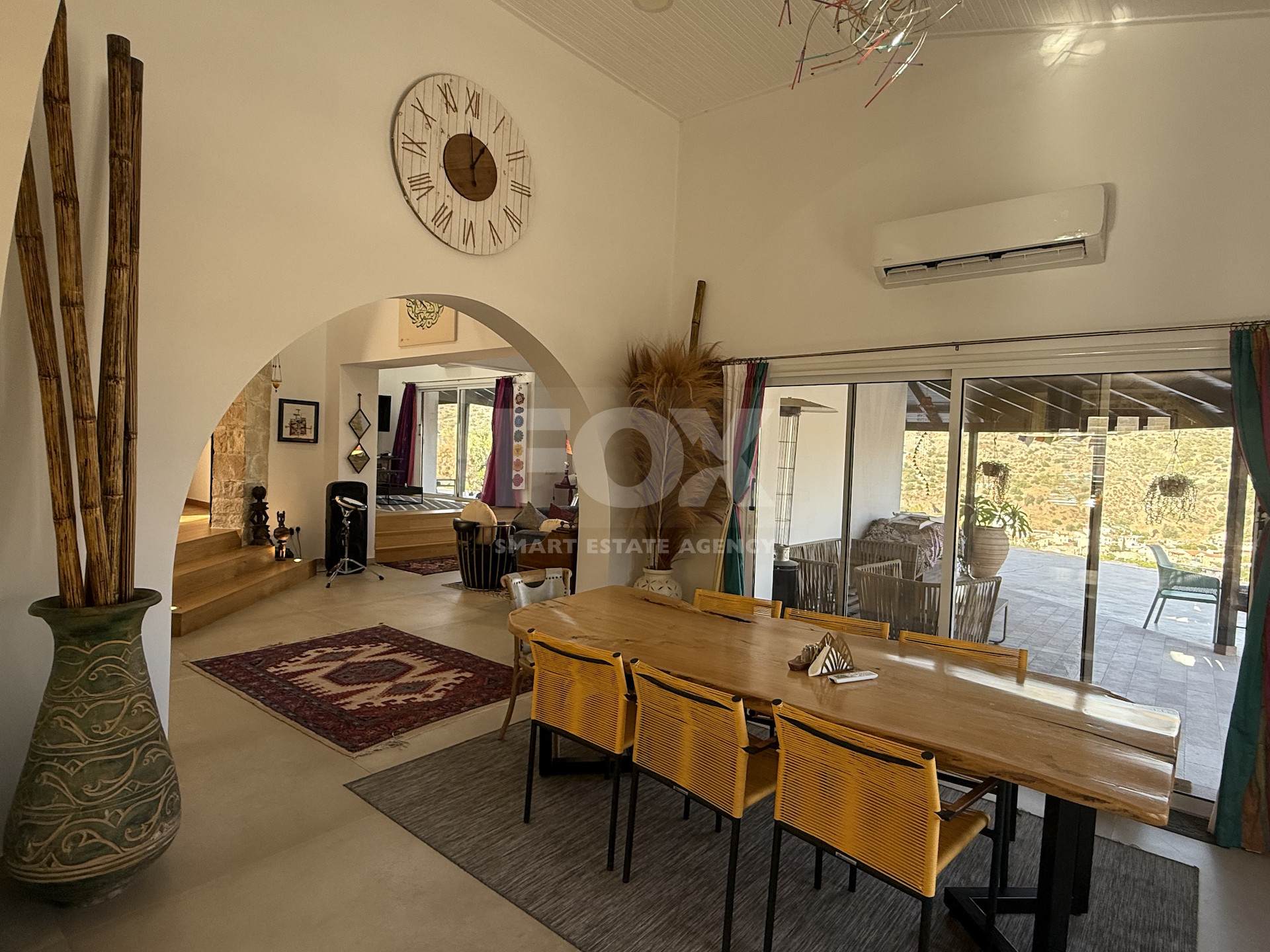 Nestled in the serene foothills of Akrounda, this unique and fully renovated property combines traditional charm with modern comfort, offering breathtaking panoramic views of the surrounding countryside.