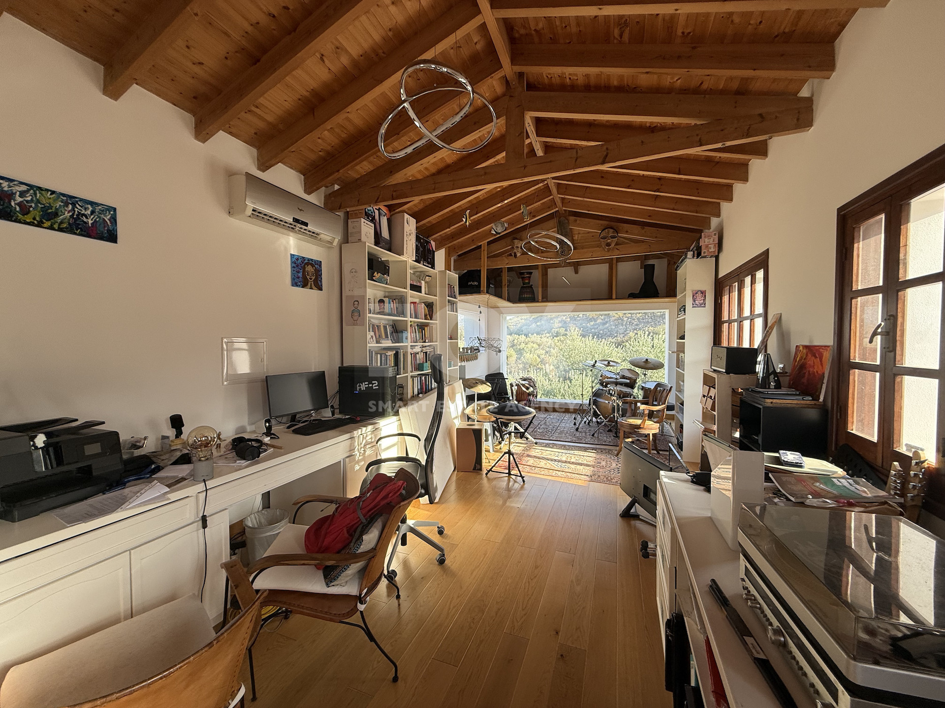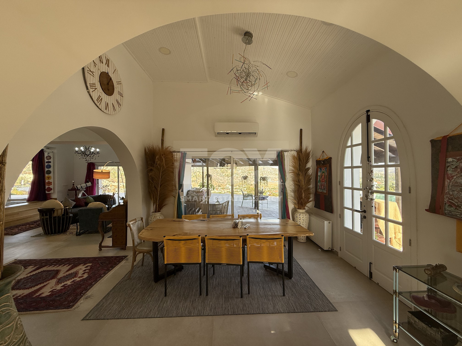 Set on a sizable plot, the property also includes space for agricultural pursuits, with ample land for planting trees or developing a small farm. Currently, the grounds include a chicken coop providing fresh eggs daily. There's also generous potential to add an infinity pool to further elevate the outdoor living experience.