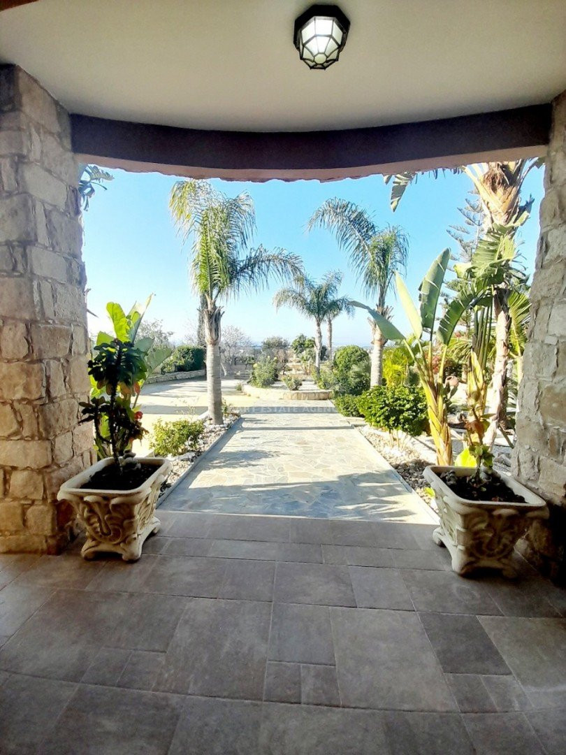 Beautiful 4 bedroom 3 bathroom furnished house located in the village of Anarita, just 15 min from Paphos center.This detached house of 300 square meters is constructed on a huge plot of land 4 737 square meters and distanced from other houses in the neighborhood. The garden is mature with variety of fruit trees and beautiful landscape. The sea view from the house itself, the swimming pool and the barbecue area is breathtaking.The house consists of 4 bedrooms, 3 bathrooms, 2 en-suite bathrooms and a guest WCThe living room, the reception rooms, the dining room, the main kitchen, the extra kitchen and 1 of the bedrooms +WC are located on the ground floor.The other 3 rooms, one of which is master en-suite with walk in wardrobe, are located on the 1st floor.The property benefits from fully equipped kitchen, fire place, storage space, extra kitchenette, security alarm, A/C, central heating, fly screens, double glazing, extra parking spaces, pergola, patio, mature garden If you are looking for tranquility, beautiful sea views and sunsets, very well equipped house, huge sized plot and far from neighbours, but not isolated, you can contact us for viewings.