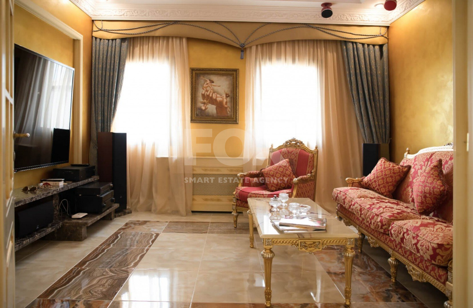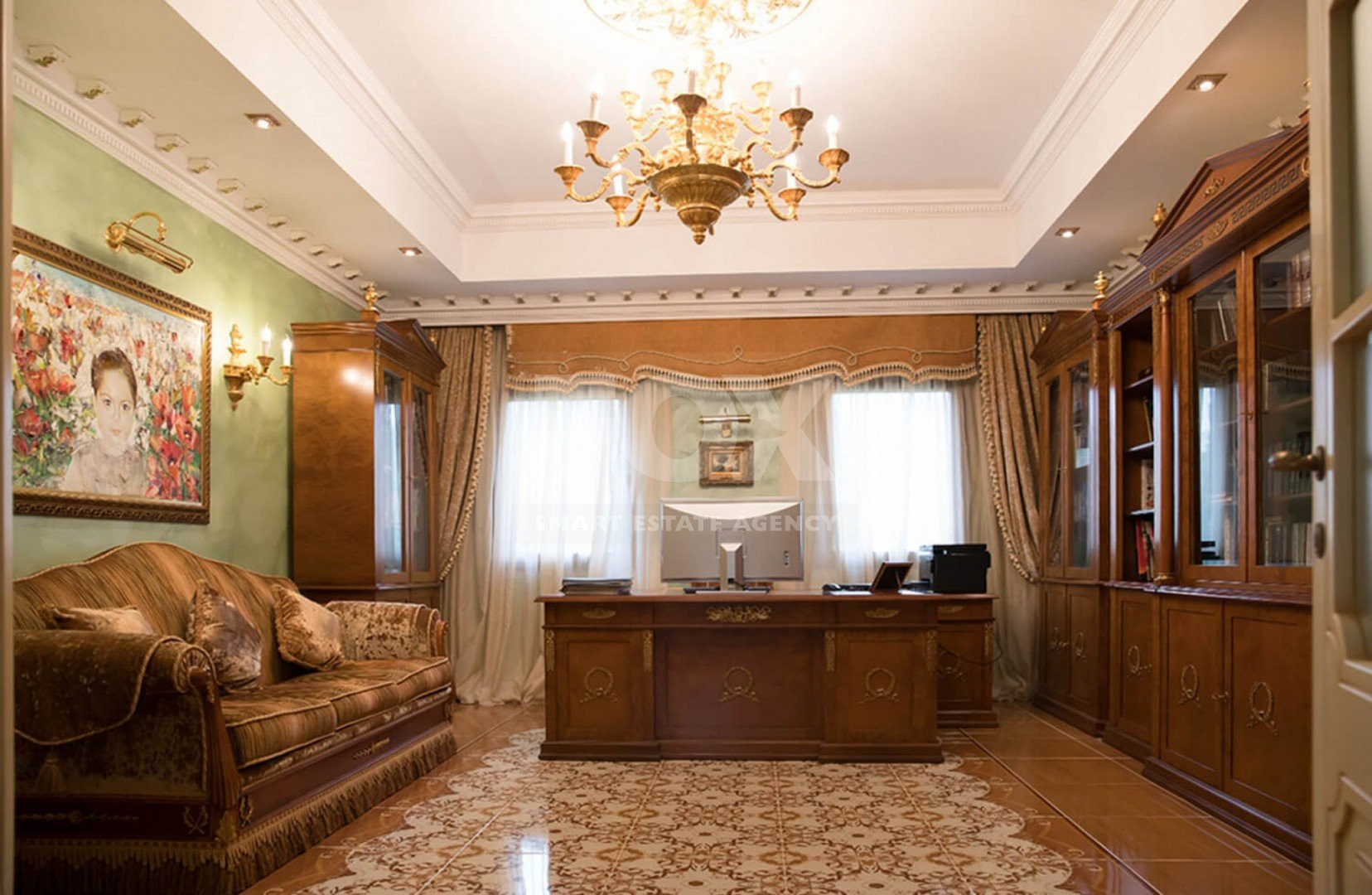 The home is furnished and decorated exclusively by high-end Italian brands and includes 6 spacious bedrooms, 6 modern bathrooms, 2 guest WCs, 2 elegant living and dining areas, 2 Italian-designed kitchens, and a generous office space. A covered garage accommodates up to 4 cars, with ample outdoor parking available.