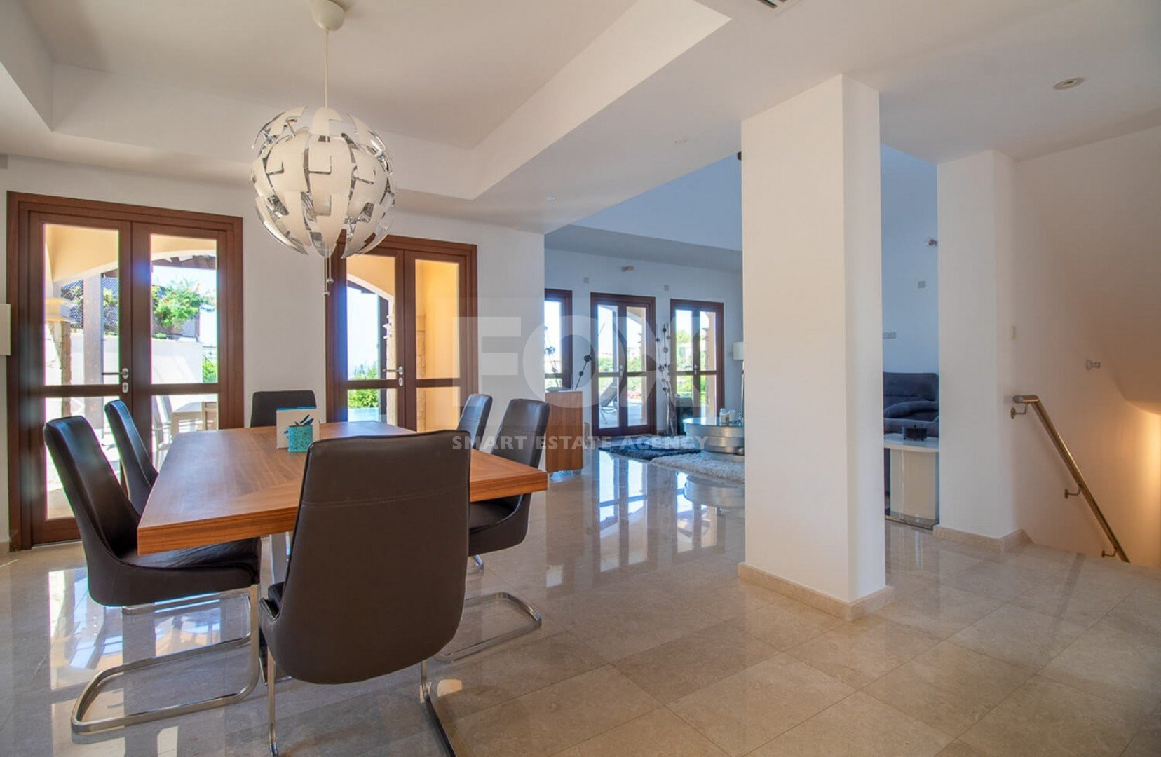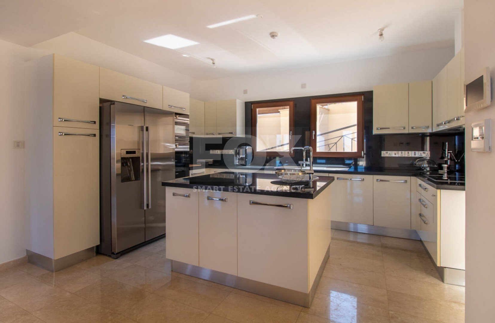 Inside, the villa is lavishly furnished with stylish décor, sumptuous fabrics, and rich color tones that create a true sense of opulence. The modern kitchen features sleek high-gloss cabinetry, premium worktops, and top-quality appliances including a large fridge-freezer, electric oven, hob, and dishwasher.