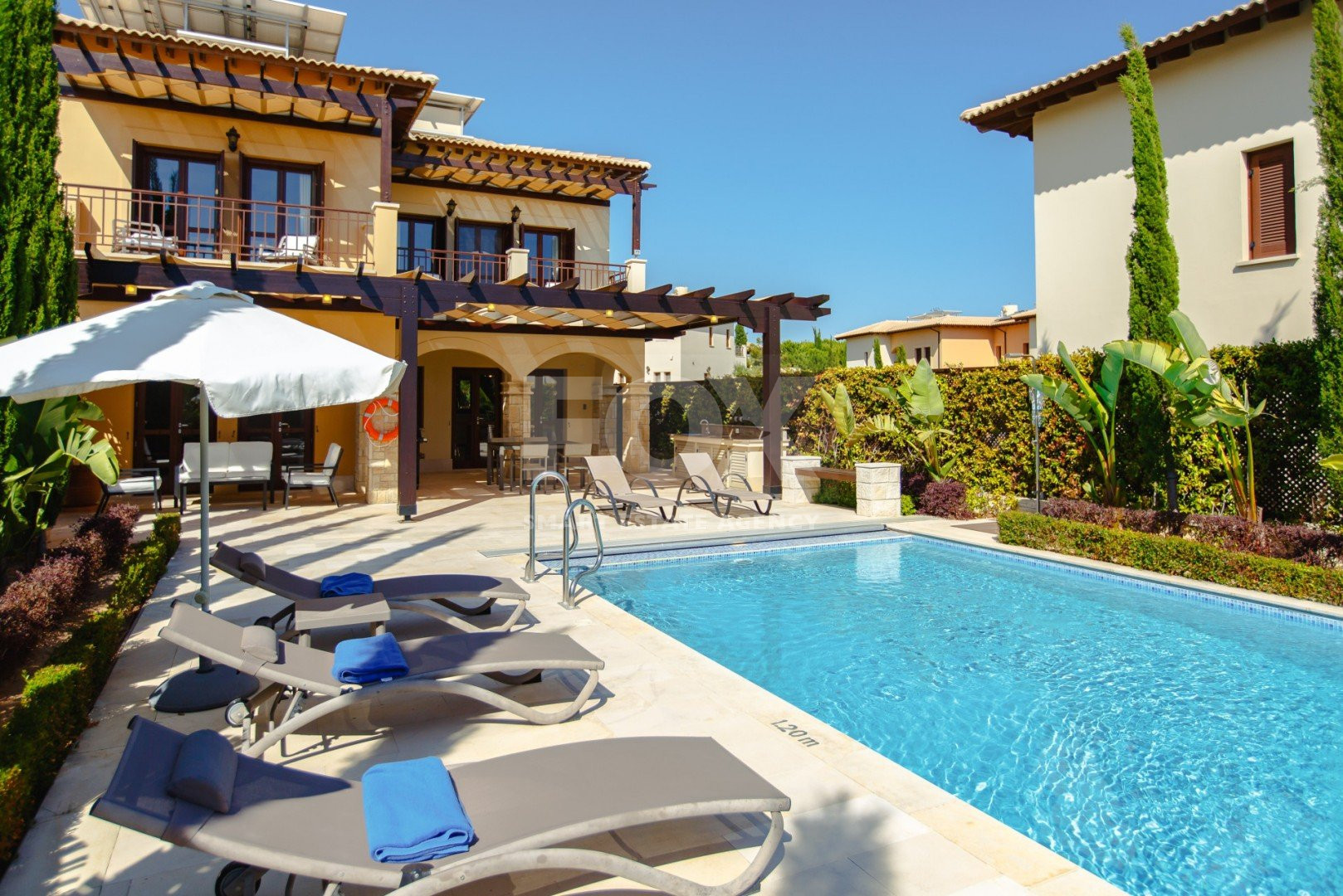 Beautiful 3 bedroom villa in Alexander Heights, south-facing site offering fabulous sea views and is just a short stroll from the Village Square shops and restaurants and the sports and leisure amenities of the resort. The villa resides in a plot area of 455 sq.meters with an internal area of 215 sq.meters. Villa is fully furnished and equipped.