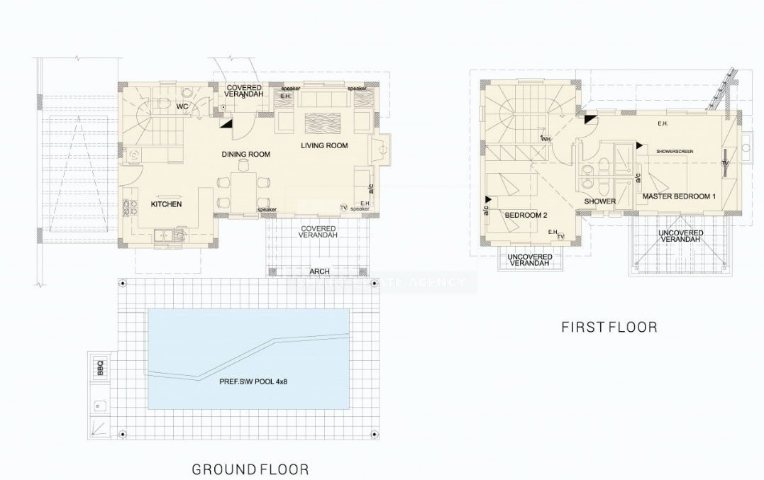 Available 2 bedroom house with private swimming pool in Monagroulli village in Limassol. The house consists from an open plan kitchen, living/dining area, guest Wc and 2 spacious bedrooms all en suite. It has thermal insulation, provision for low energy consumption electric heaters, pressurized water system, provision for home cinema in the living room, provision for Internet, tv and telephone in all rooms. The house can be delivered 18 months from the payment of the 1 installment.