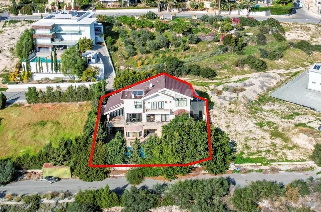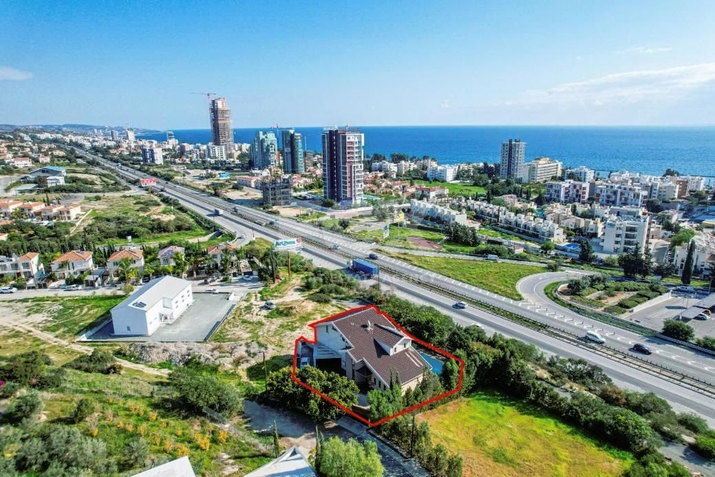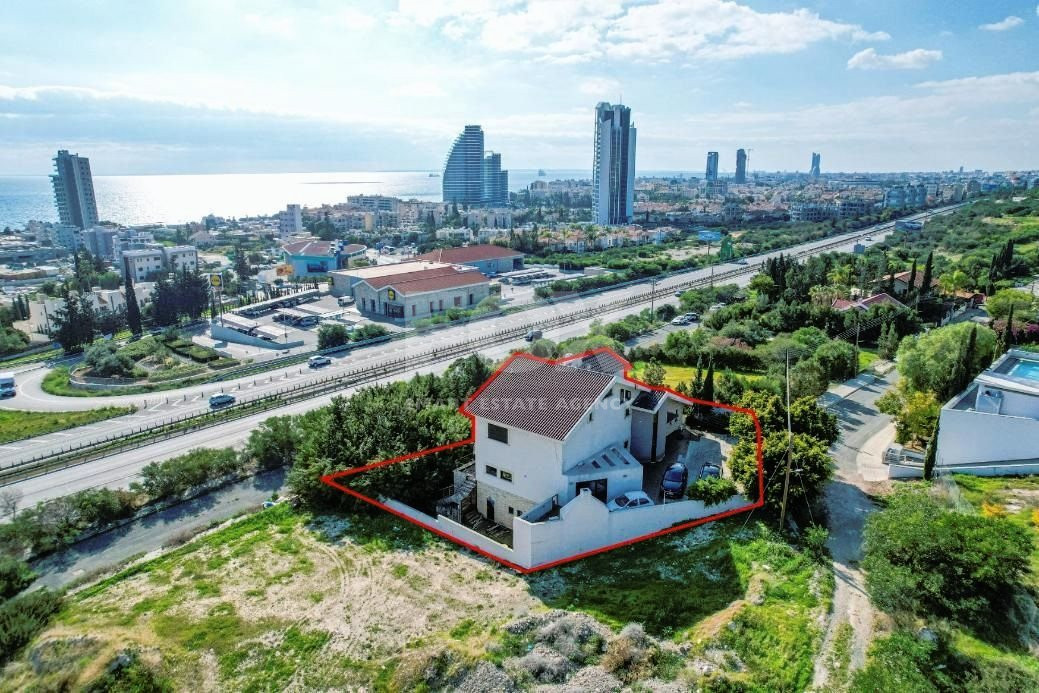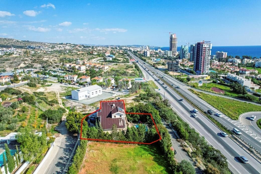 The property concerns a two-storey house with a swimming pool, in Mouttagiaka. It abuts a registered road on its south and northern boundaries, and on a public green area along its east boundary with a total frontage on the public roads of approximately 35 meters.