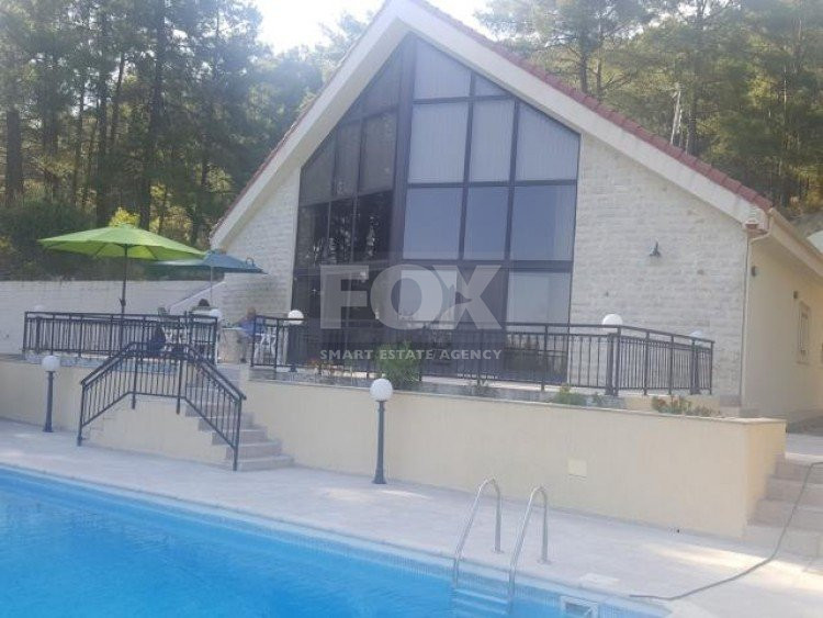 Discover a beautiful and unique luxury home nestled among the forests of Platres, ensuring complete privacy and security with its gated entrance and a private road leading to the residence. This meticulously maintained detached house spans two levels, featuring three bedrooms plus an office or extra bedroom, three bathrooms, a spacious eat-in kitchen, and generous living and dining areas. Abundant storage is provided by two expansive storage rooms. The villa boasts a large private swimming pool and ample patio/terrace space, perfect for entertaining guests. Situated on a vast 1624sqm plot with mature trees and landscaped gardens, the property offers tranquility amidst forest pine trees and stunning elevated views of the mountains. The kitchen, equipped with modern appliances, leads to an external purpose-built barbecue area and a covered wooden pergola. The property features underfloor heating, solar water heating, double glazing, a security alarm system, and a private road, all contributing to the comfort and privacy of your life. With four separate spacious bedrooms, including a master bedroom with an ensuite bathroom, this villa harmoniously blends luxury and natural beauty, providing an idyllic retreat in a serene forest setting.Set amongst the pine forest of Platres this is a beautiful Villa designed and built by the current owners. A very quiet, private and peaceful location in the heart of nature. 10 minutes drive to Troodos and 5 minutes to large supermarket, shops and amenities.