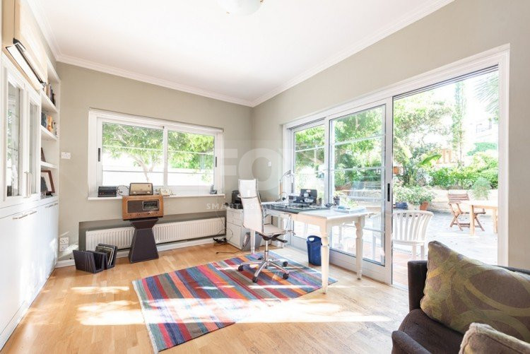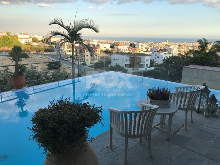 This lovely detached 4 bedroom villa with separate maids quarter is in a quiet residential location within easy access to schools and all arteries of Limassol.Level 1:lower ground level offers a small apartment of 39m² with shower wc/ kitchenette and lounge area,Level 2: Ground level (where the pool is also located, offers the main entrance to the house, parking for 2 cars and direct access to the laundry room and kitchen.Large kitchen with dining area, large sitting/dining/lounge area, direct sea views and access to the outside patio and infinity edge swimming pool. Outside covered terrace for outside entertaining, offering uninterrupted sea views. A further office/study room with opening onto mature landscaped gardens, guest wc, storage room.Level 3: 4 bedrooms, two bathrooms, master en suite with walk in closet, second bathroom with double his and hers washbasins and bidet. Three of the bedrooms have sea views with balconies including covered sitting area. Storage room with access to a low ceiling loft where the water tank is stored.High quality materials and sanitary fittings, solid wooden parquet floors, including the doors wardrobes, kitchen and staircase to upper floor (oak).Natural unpolished blacl marble on the kitchen surfaces.Double glazing, high quality windows and bi folding doors. Insulated walls, central heating, air condition throughout, central vacuum system. Insulated roof.